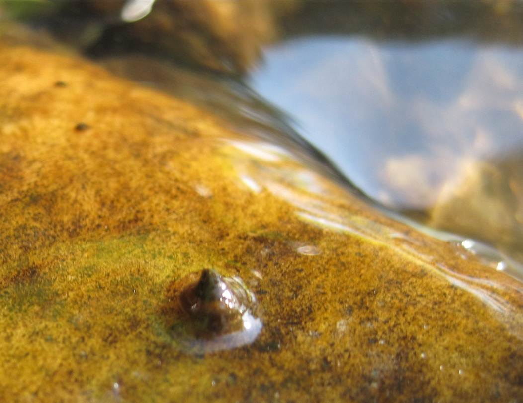 Wasser steigt aus flach geharktem Kies auf – es fliesst durch den so wichtigen Kieslückenraum (der Fachchinese sagt „hyporheisches Interstitial“).
