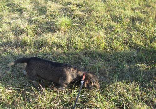 Im Rauen ist gut Schauen, mit der Nase! – Kampfdackel Socke kann nicht anders, in so viel Natur geht seine mit ihm durch …