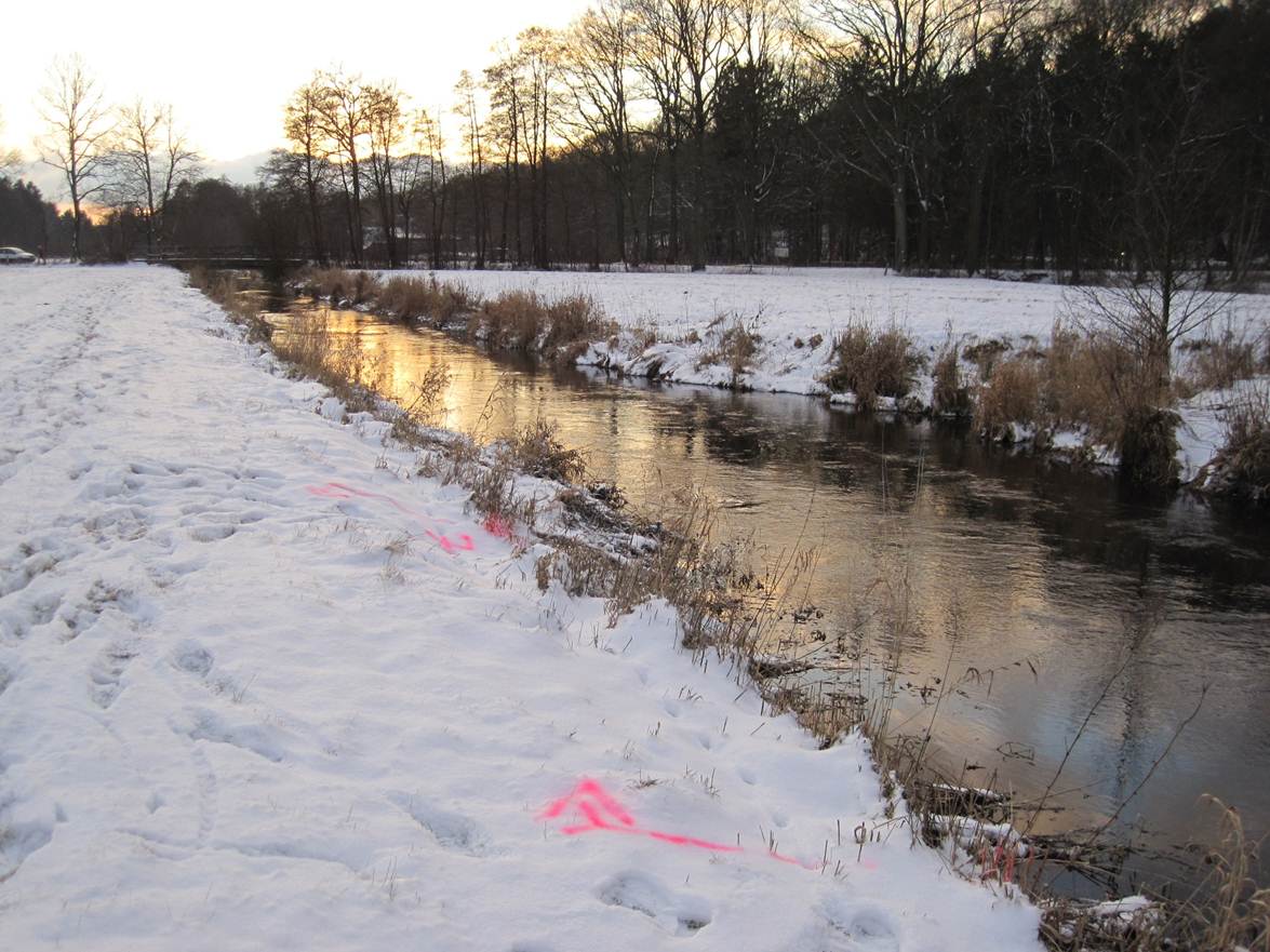 Demnächst kommen ca. 300 m³ Kies und Geröll aus Ausgleichs- und Ersatzmaßnahmen und werden aus der bisherigen Sandwüste ein strukturiertes Gewässerbett entstehen lassen. Speisekammer, Versteck für Wirbellose und Fische, Fodder für den Odder – all das wird anschließend zuhauf da sein.