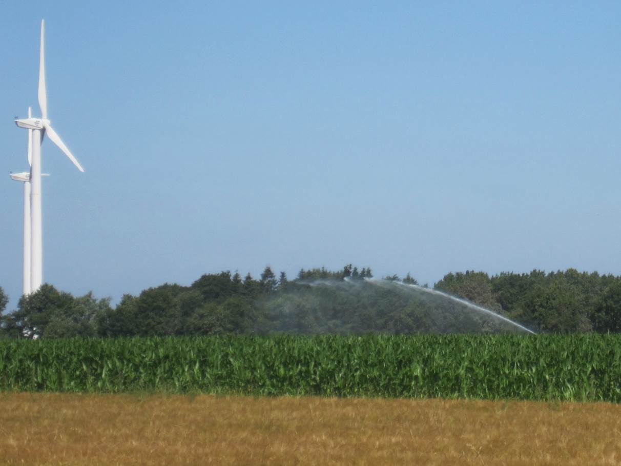 Feldberegnung aus vollem Rohr – bei voller Sonne im Hochsommer, Richtung 30 Grad Celsius – so vernichtet man Quellbäche am effektivsten.