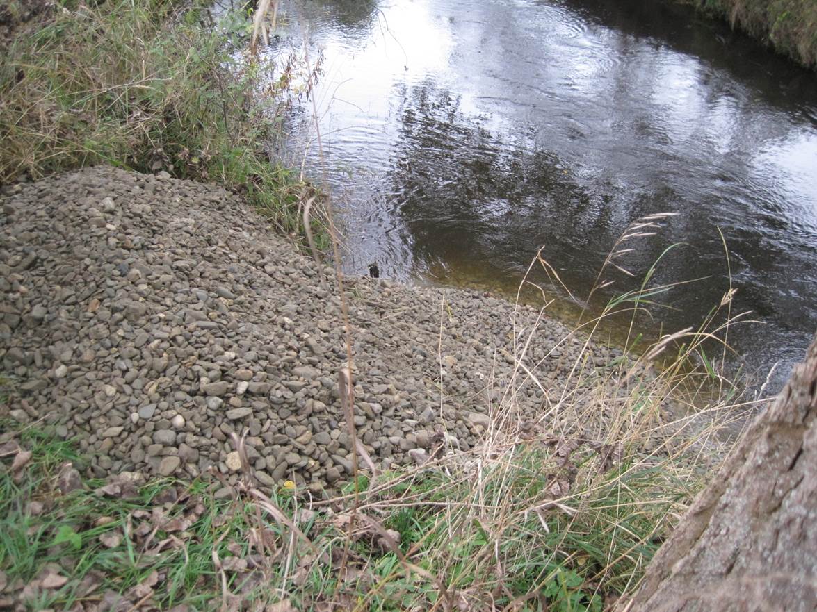 Erste Beobachtungen zeigen, dass nicht nur die erwartete Entwicklung mittiger Laichplätze daraus resultiert, sondern dass die Depots quasi als Hochhaus von Wirbellosen (klar!) und Mühlkoppen angenommen werden.