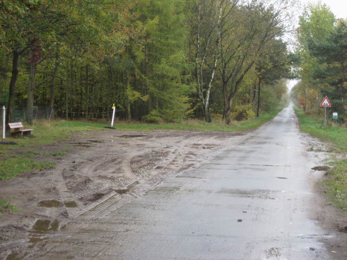 Die Fahrspuren der Vortage voll Wasser – jetzt ist Baustopp, schon aus Gründen des Bodenschutzes.