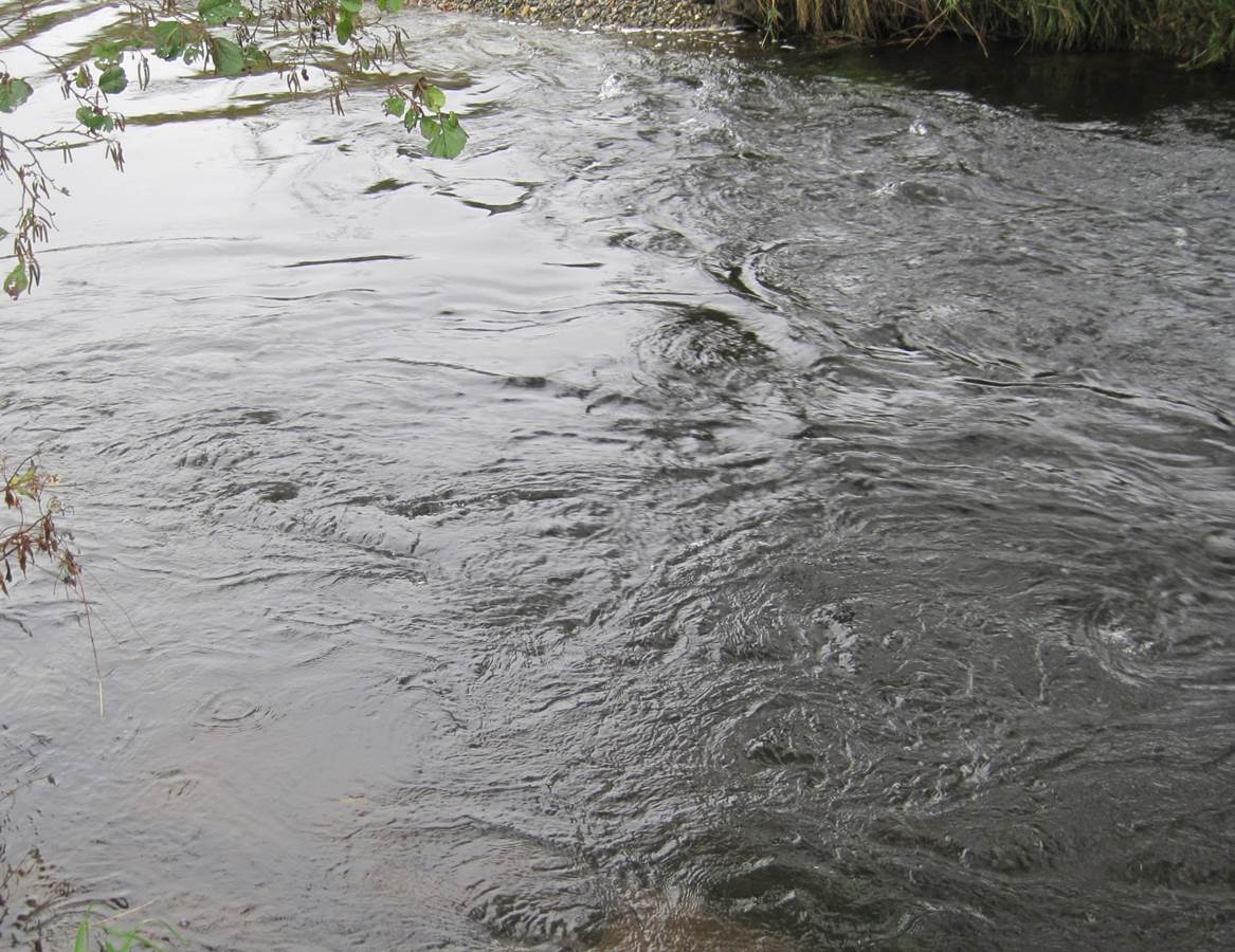 Stehende Wellen am vor längerer Zeit umgebauten Bendestorfer Wehr – um diese Höhenunterschiede anzugleichen, bräuchte es erhebliche Kies-Geröllmengen. Wir haben ein wenig unterstützt.