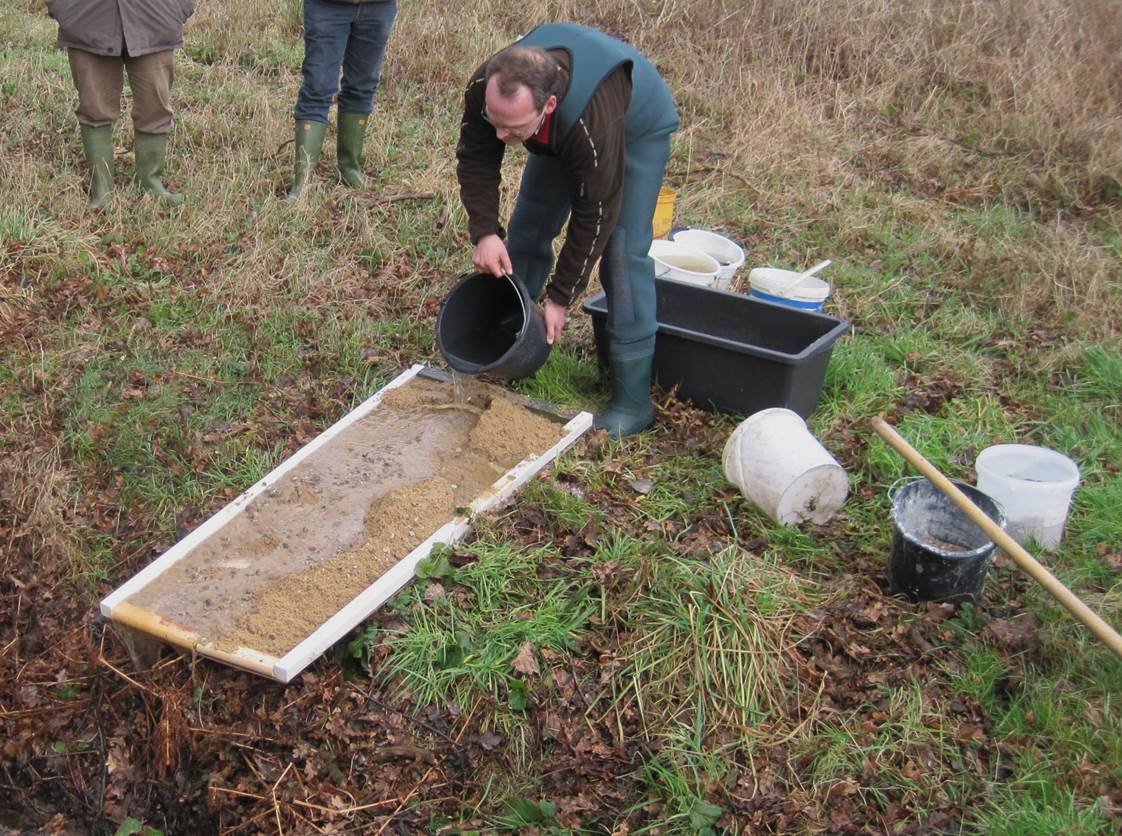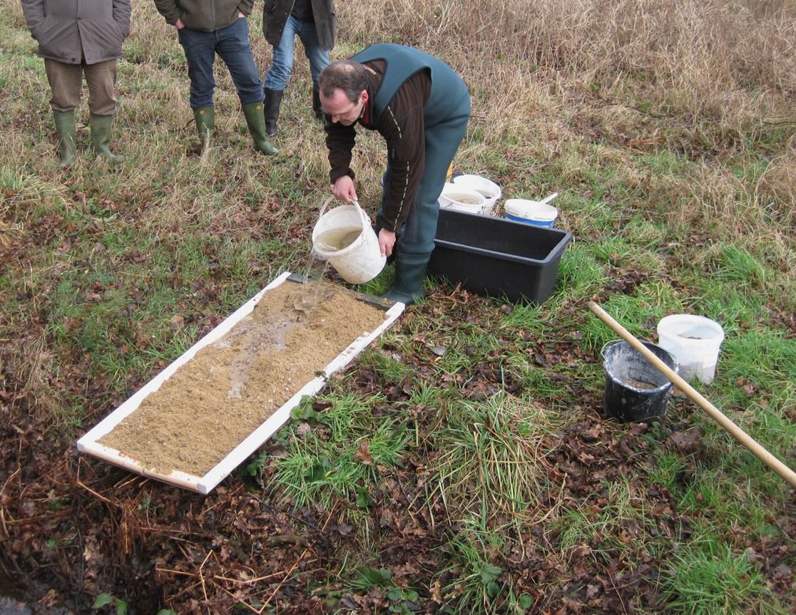 Ralf Gerken vom Landessportfischerverband Niedersachsen hat sein Experiment zur Landschaftsentstehung, Nacheiszeitlandschaft Geest, gut vorbereitet.