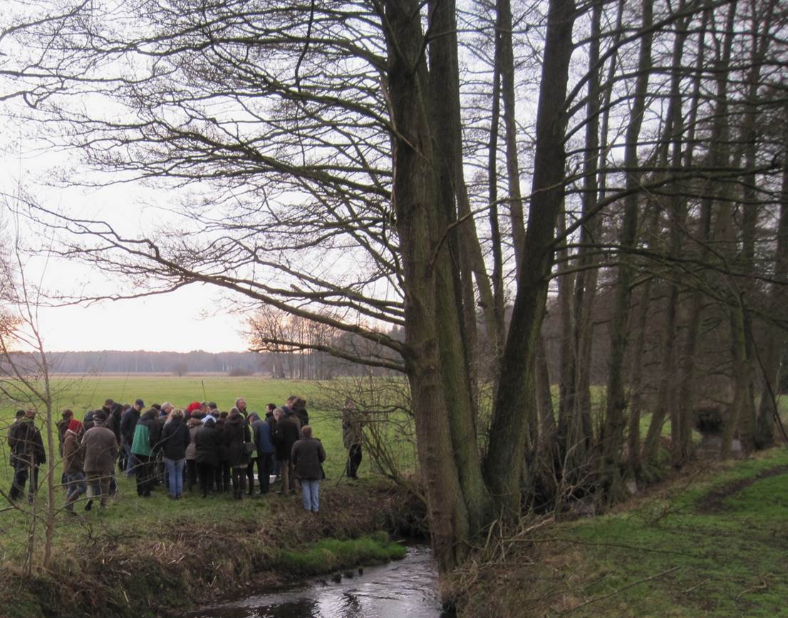 Hier einige willkürliche, sinngemäß widergegebene Zitate der Referenten, bevor Fotos von der Exkursion zum Geestbach Fintau, Einzugsgebiet Wümme – Weser, folgen.