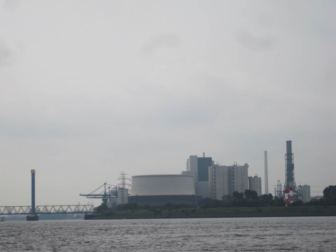 Streitobjekt Vattenfall-Kohlekraftwerk Moorburg – Novum flacher Kühlturm. Irgendwie wird man den Küstenklatsch-Spruch nicht los, eine Umwelt-Staatsrätin hätte Vattenfall diesen Großklotz durch Verdopplung ursprünglicher Pläne angeraten.