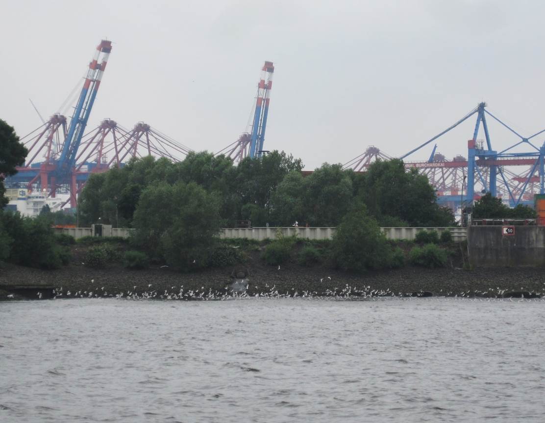 Da, am linken Köhlbrandufer – massenhaft Möwen!