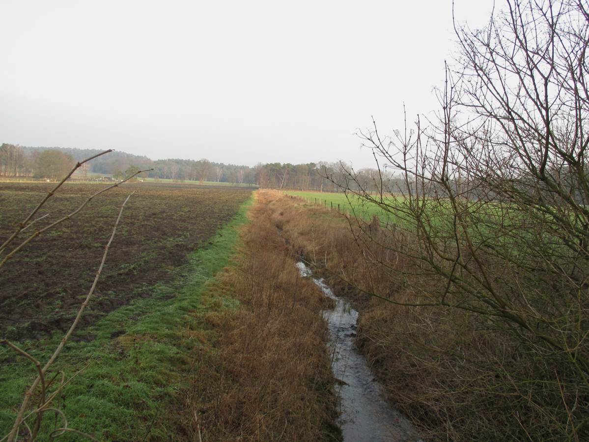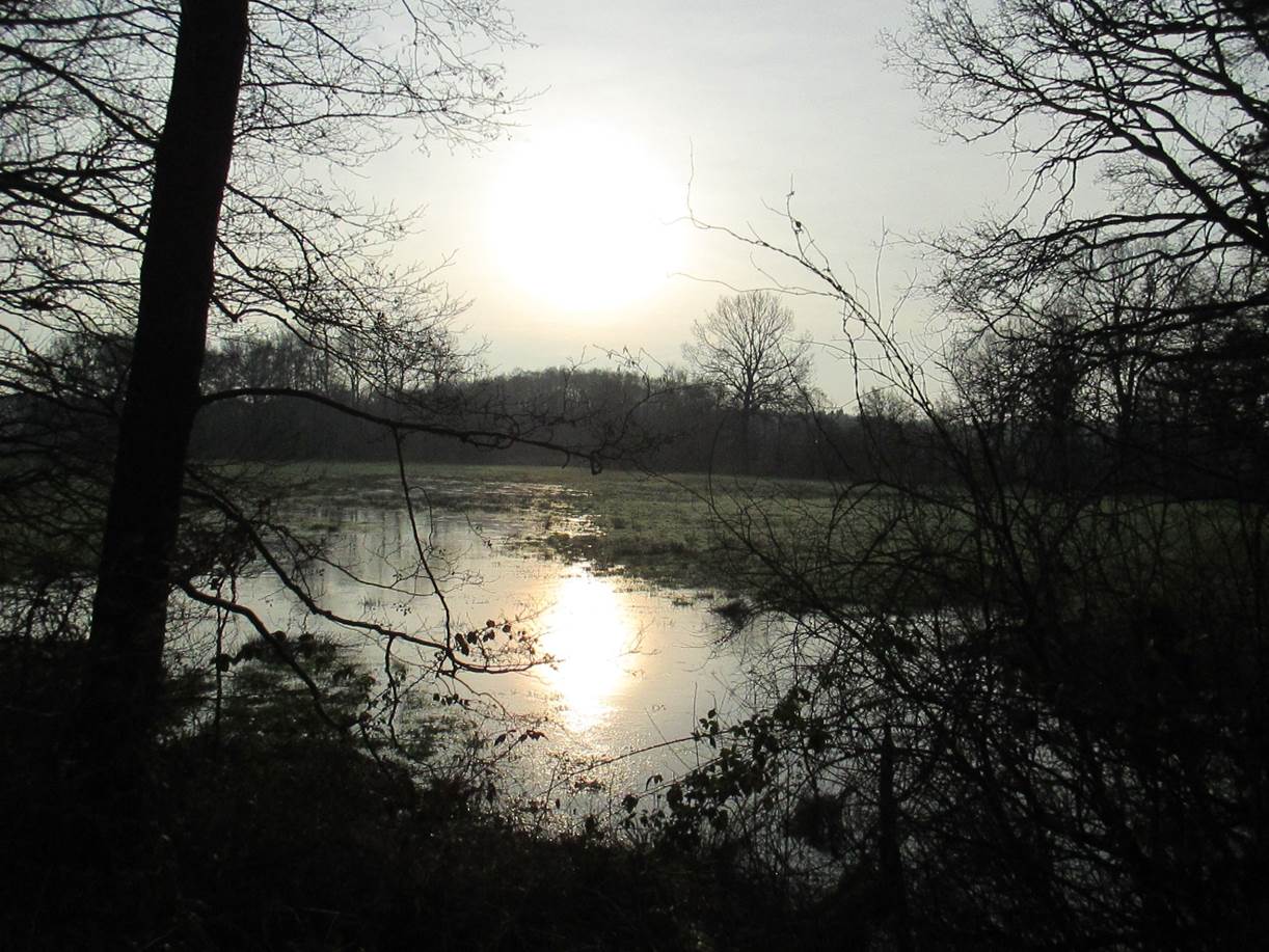 Neujahrssonne überm Wiesenwasser. Mal abwarten, ob der Wasserstand hier im NSG Obere Wümmeniederung 2015 für die Amphibienentwicklung ausreicht.