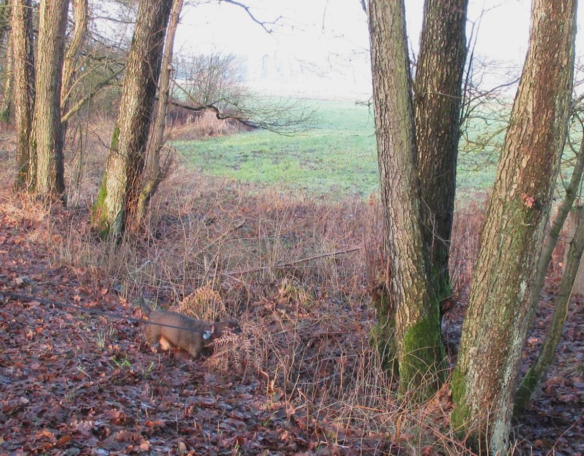 In solcherlei Umfeld ist Socke von de Dreyster Drift in seinem Element – Spuren über Spuren, im feuchten Erdreich Pilze über Pilze …