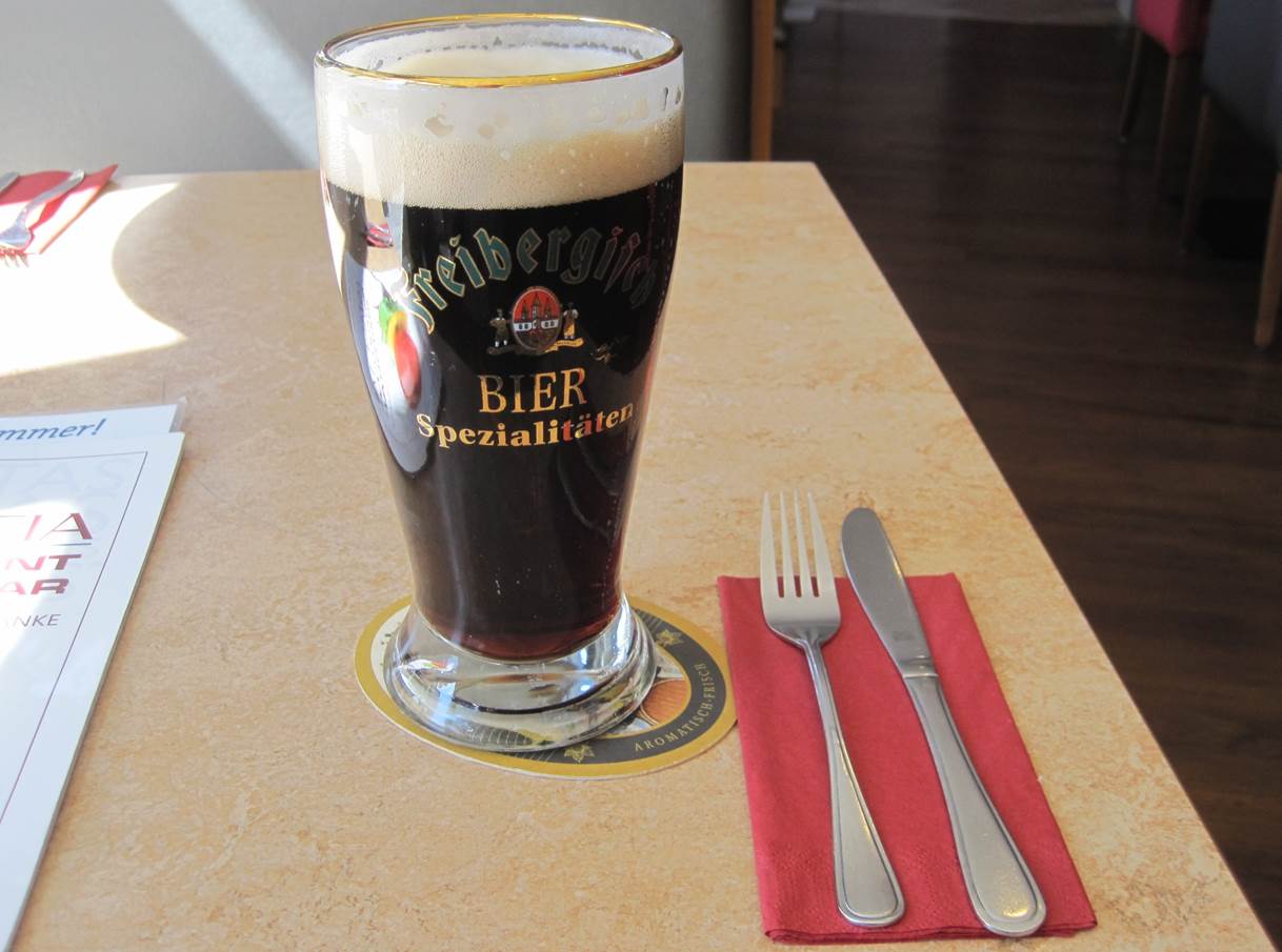 Da ist der Hals trocken geworden. Zum Abschied noch ein Freibergisch Schwarzbier und ein gutes Essen.