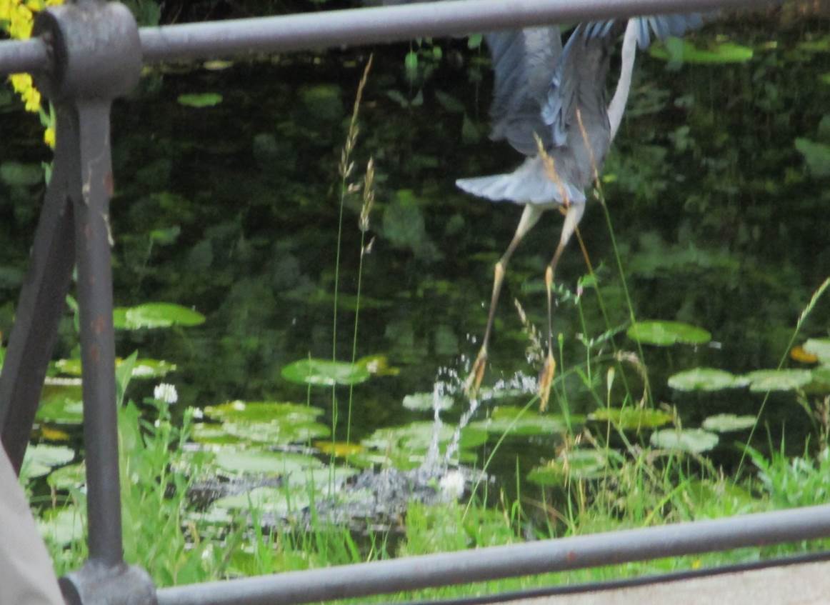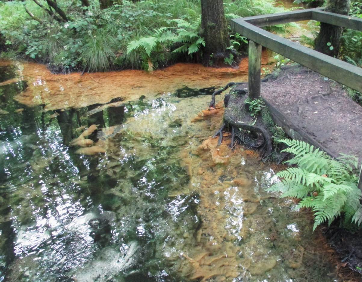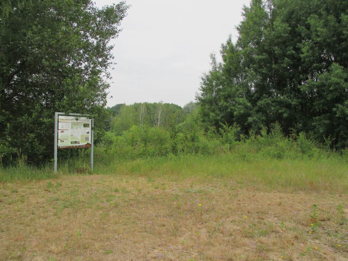Der Erzählung nach, es steht auch ein Schild nebendran, sollte hier ein fester Damm durch das Tal geschüttet werden. Wie das bei Menschenwerk manchmal ist, war das ein Durchbruch … (Die Last wurde vom weichen Boden nicht getragen, versackte, Freiwasser zeigte sich! Das ist jetzt vollständig mit Krebsschere überwachsen.)