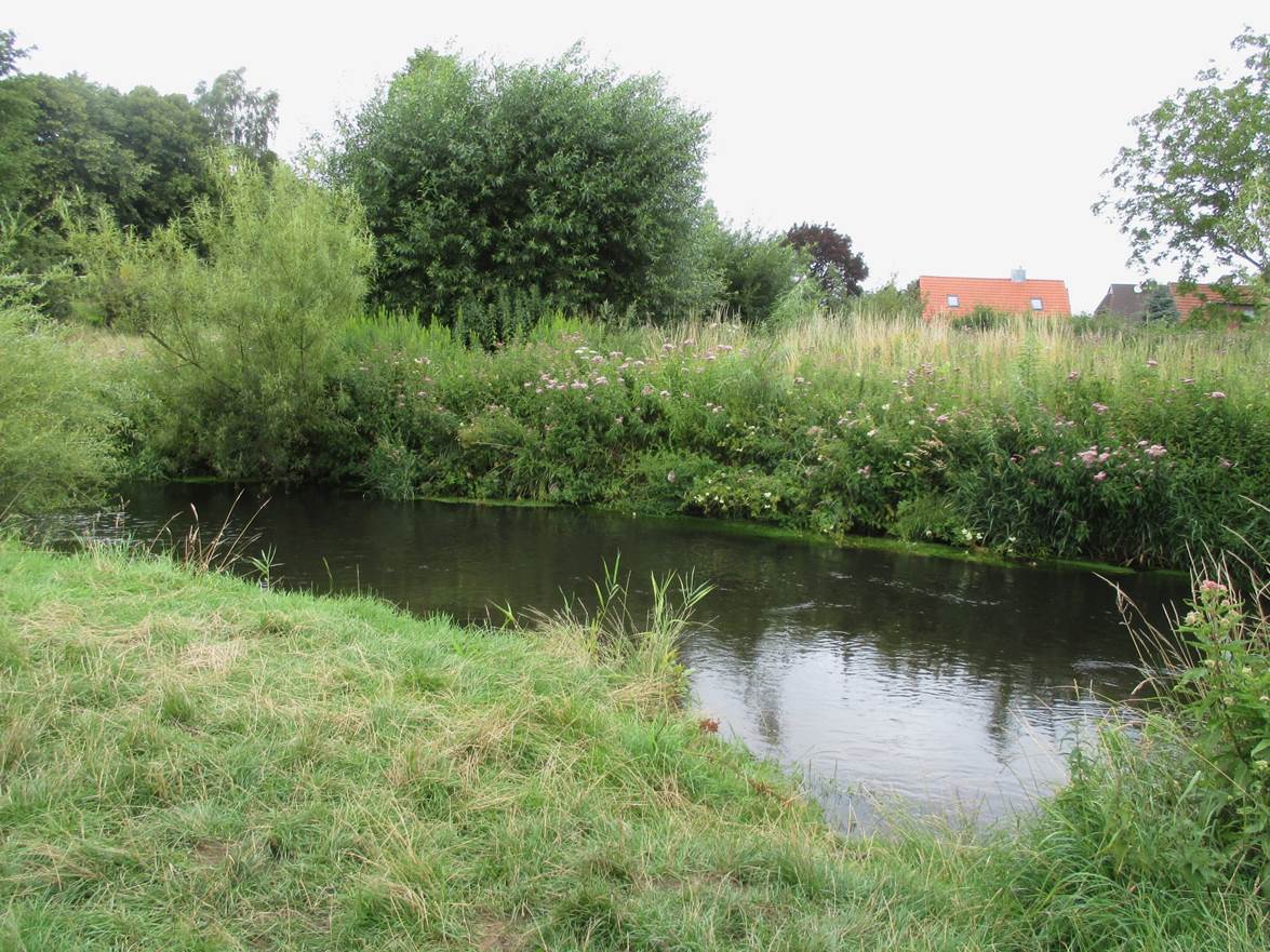 Der Mais ist heiss … – Völlig naturfern fliesst die Seeve wohl 2 m unter Böschungsoberkante. Ohne jeden Randstreifen grüßt dunkelgrün Mais herüber. – Wieso zahlen wir Steuerzahler – zwangsverpflichtet – eigentlich für solch missbräuchliches Handeln Subventionen (und sei`s, dass die „EEG-Strom-Cent“ umschrieben werden).