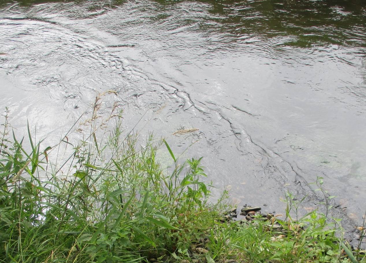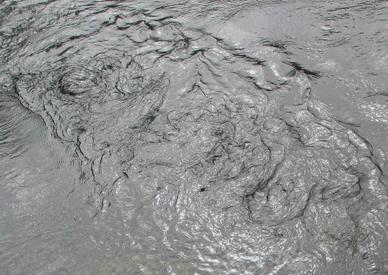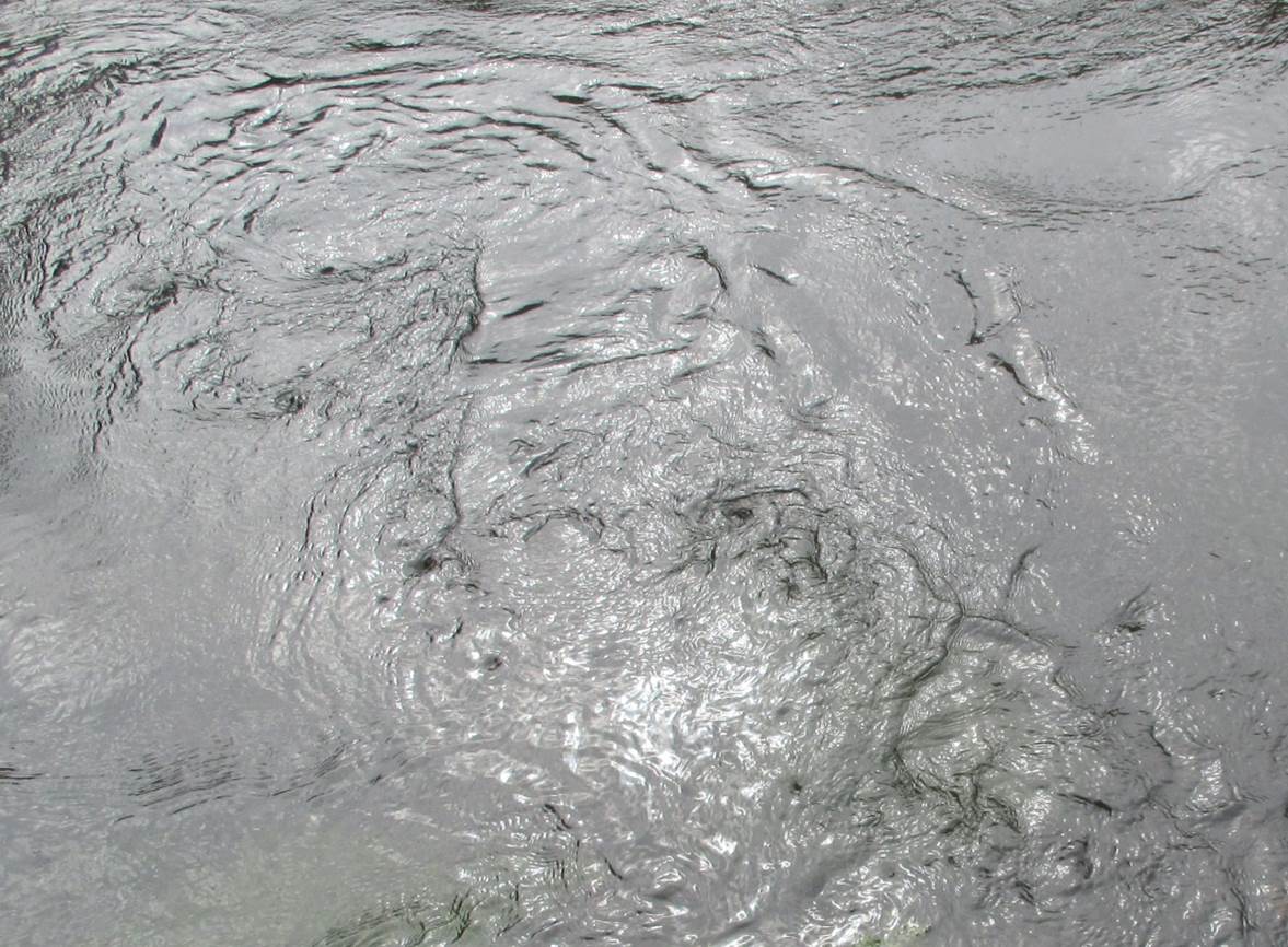 Solche an der Wasseroberfläche sichtbare Strömungsturbulenz bietet darunter manchem Gewässerorganismus ein „Schutzdach“, hydraulisch entstandenes Versteck.
