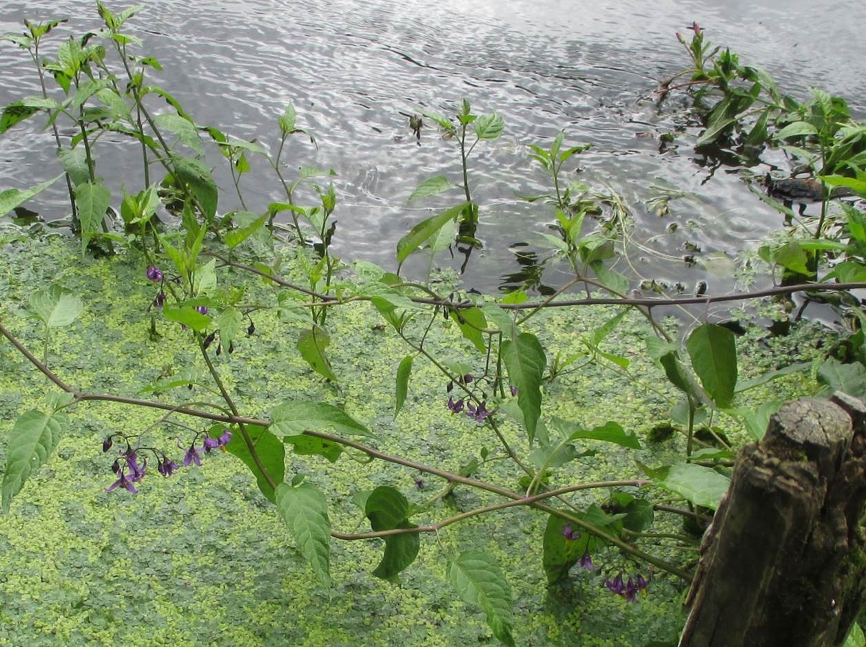 Die gelb-violetten Blüten des Bittersüßen Nachtschattens werden aufgrund der fortschreitenden Jahreszeit …