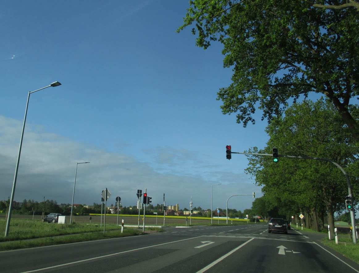 Geradezu als Beispiel für gesunde Gewässer mit lichtem Schatten unter Kronenschluss begleitender Bäume grüßt die Bundesstraßenallee den Heimkehrer.
