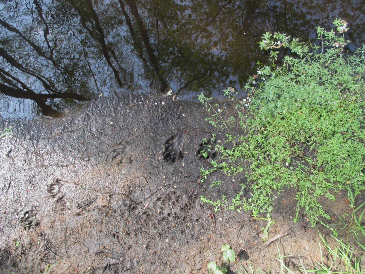 Solch Spuren – hier ganz schön groß – mit Fingerchen hinterlässt der Waschbär.