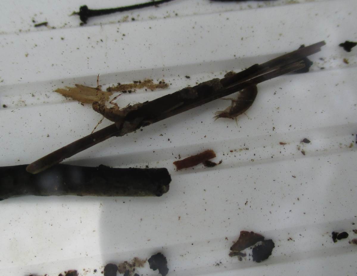 Leider sahen wir am Exkursionstag auch ganz etwas anderes: (Un)massen Bachflohkrebse, die offenbar durch (Agrar?)Gift nicht mehr in der Lage waren, ihren Standort zu halten. Massenabdrift ! ! !
