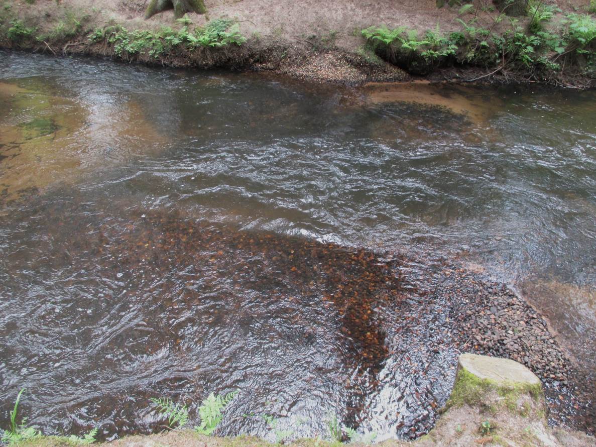 An einer jahrelang als Kies-Depot, zur Umlagerung des Kieses durch die Este, genutzten Stelle hat sich ein optimales Strömungsbild mit Kolk-Rausche-Abfolgen und hervorragenden Laichplätzen entwickelt.