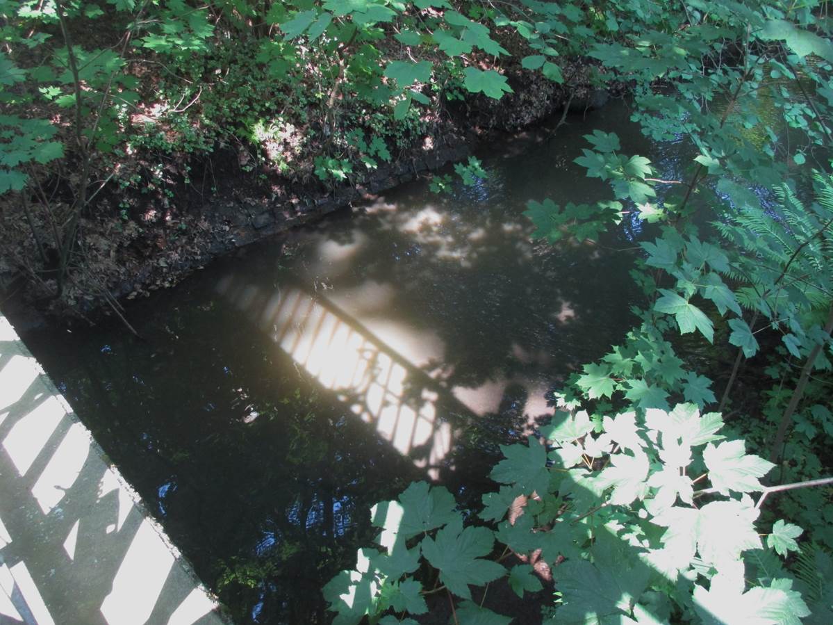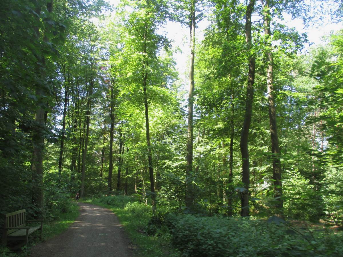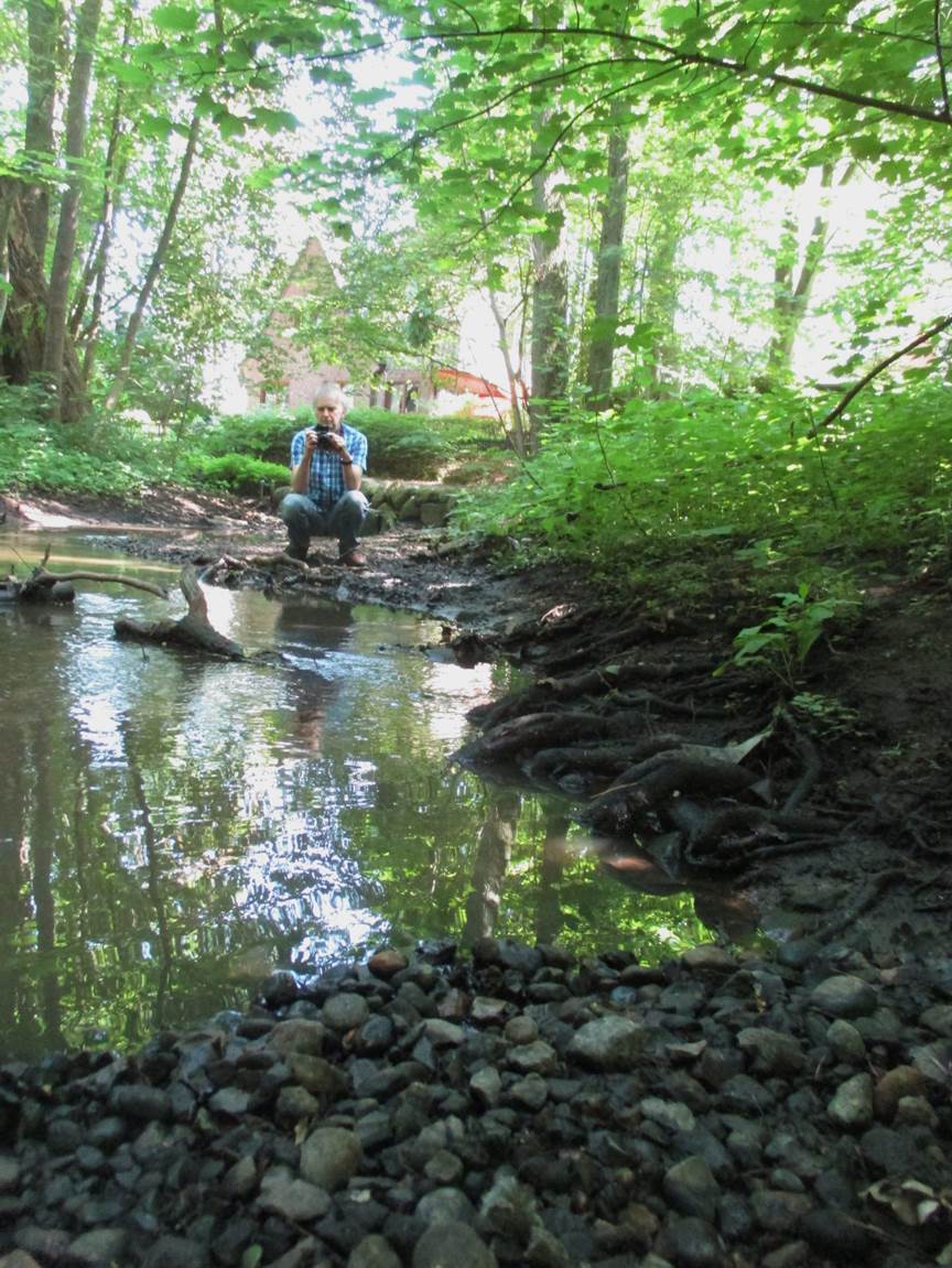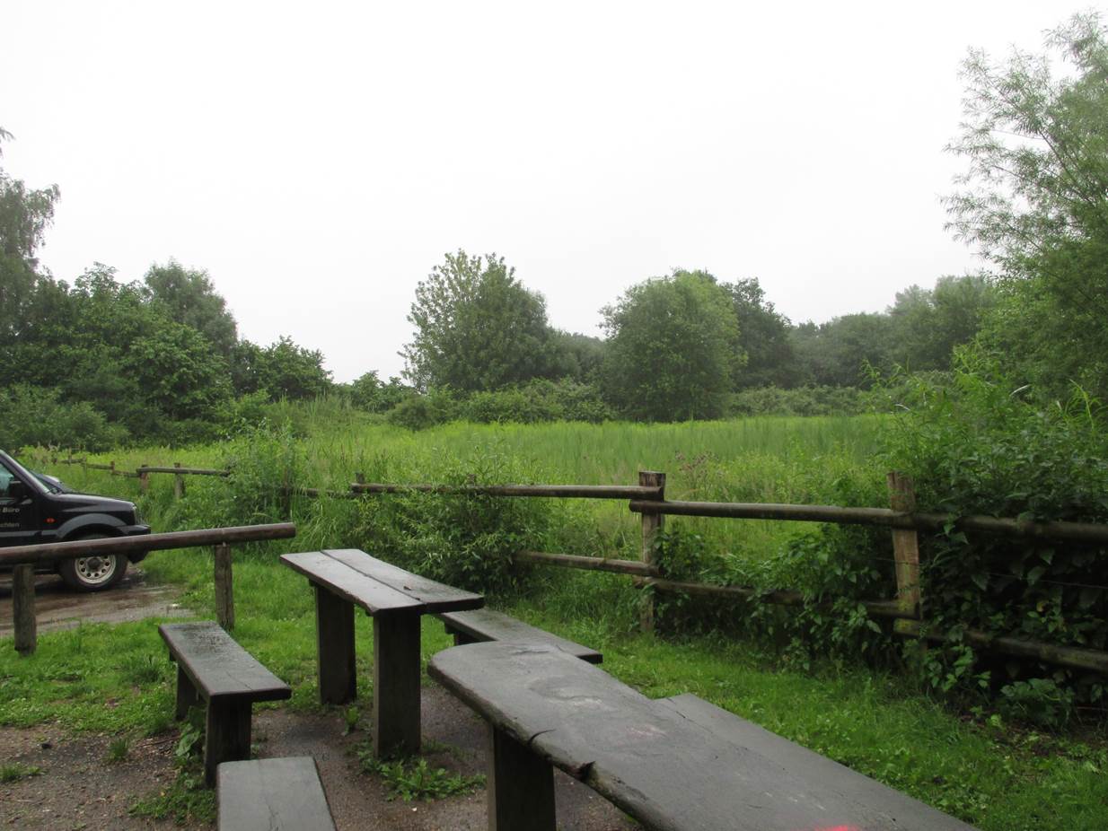 Seenlandschaft, von Fliessgewässern durchzogen – Parkplatzzufahrt zur Liether Kalkgrube, ein Modell für die Nordamerikanischen Seen.
