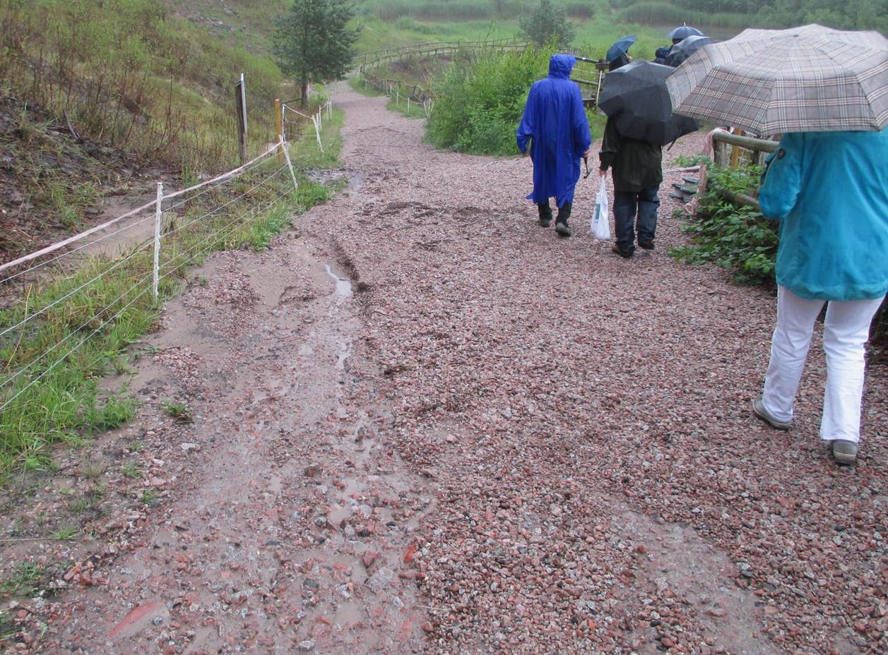Die Zuwegung über Glensanda-Kies ist ausgezeichnet. So ganz ungeschoren haben die Gewitterschauer den Weg allerdings nicht gelassen. Demnächst sind die Erosionsrinnen wieder beseitigt.