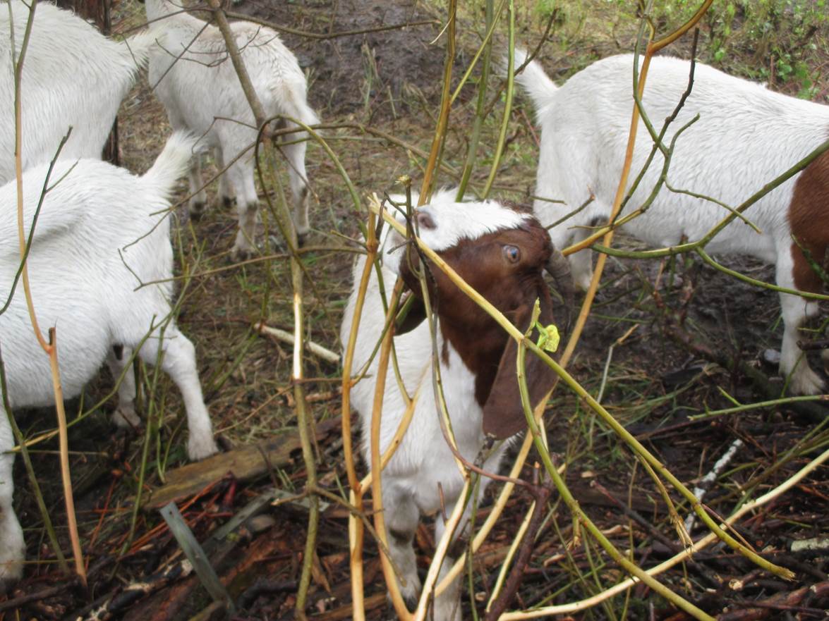 Gut klappt auch das flächenhafte Abfressen ansonsten stark dominierender Brombeerdschungel. – Eine kleine Pause zwischendurch.