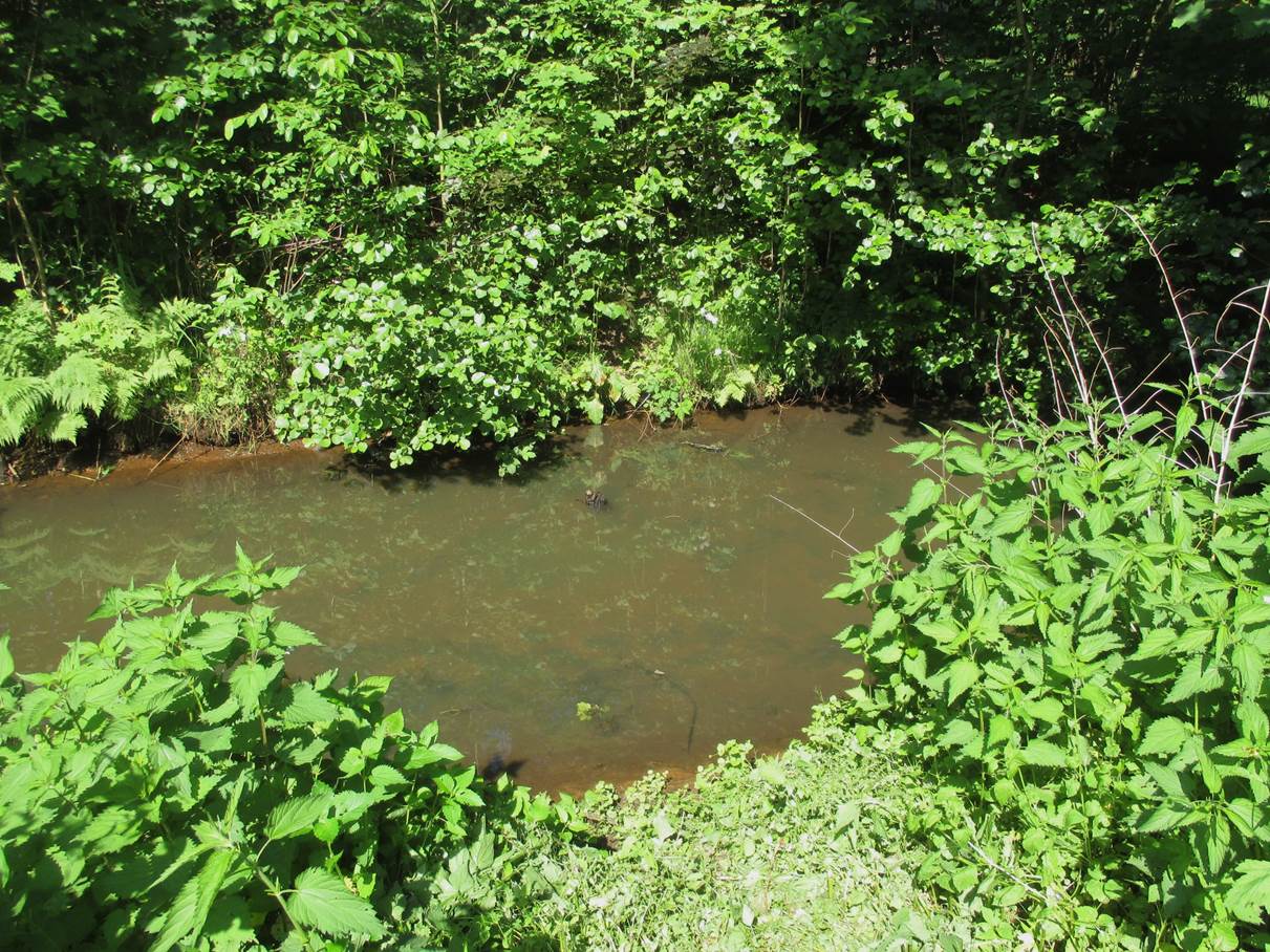 Steilwand vor Ockersee – nicht fotografiert befindet sich nebendran eine Karstquelle mit klarem Wasser, bevor auch dieses sich ins Ockerfarbene einmischt.