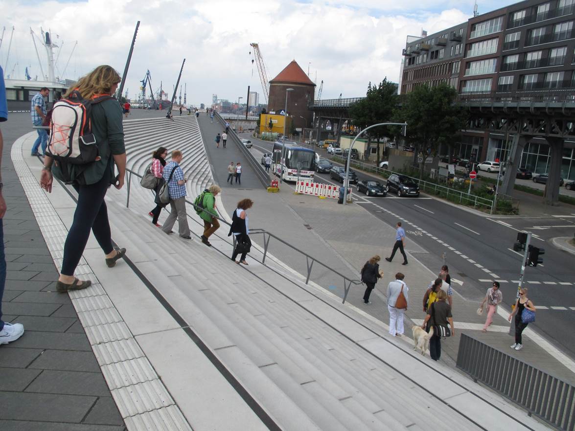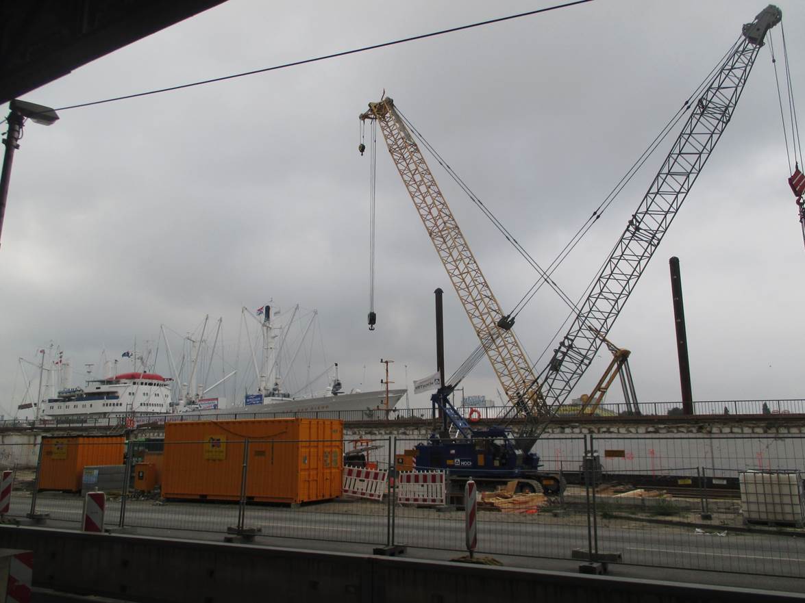 Vorbei an der beeindruckenden Baustelle Hochwasserschutz, die die touristische Begegnung mit Elbe und Hafen mit eingeplant hat.