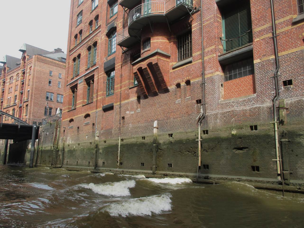 Wir durchqueren die Speicherstadt. Lange Strecken der auf Pfählen gegründeten Bauten sind zu sanieren – wieso?