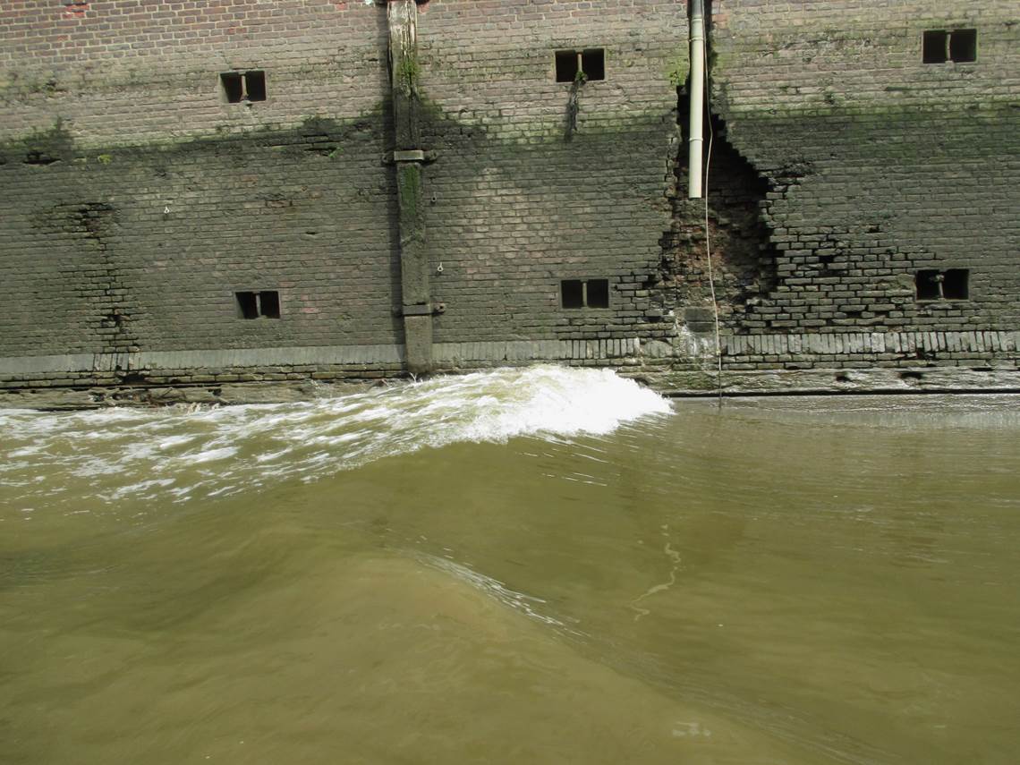 Fast an Bord – fast Tideniedrigwasser, oha, steil hoch geht der Blick! So ein Hafen mit in grossen Teilen tief liegenden alten Zentrumsteilen muss schon allerhand Sicherheitsaufwand gegen Sturmfluten treffen.