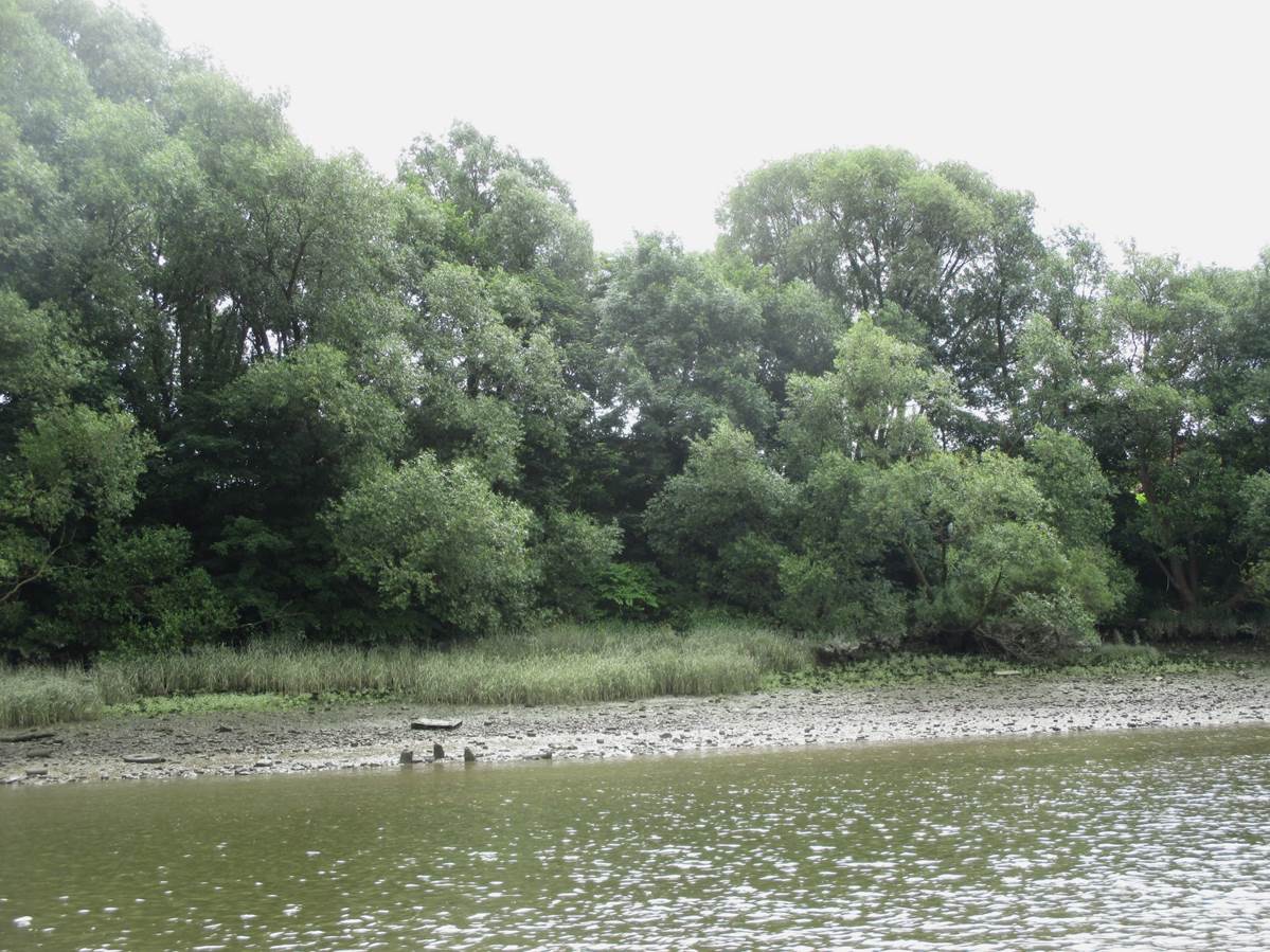 Auch mitten im Hafen – man wundert sich! So sah früher mal das gesamte Elbe-Ufer aus. Pflanzensukzession mit beeindruckendem dreidimensional großem Tide-Auwald.