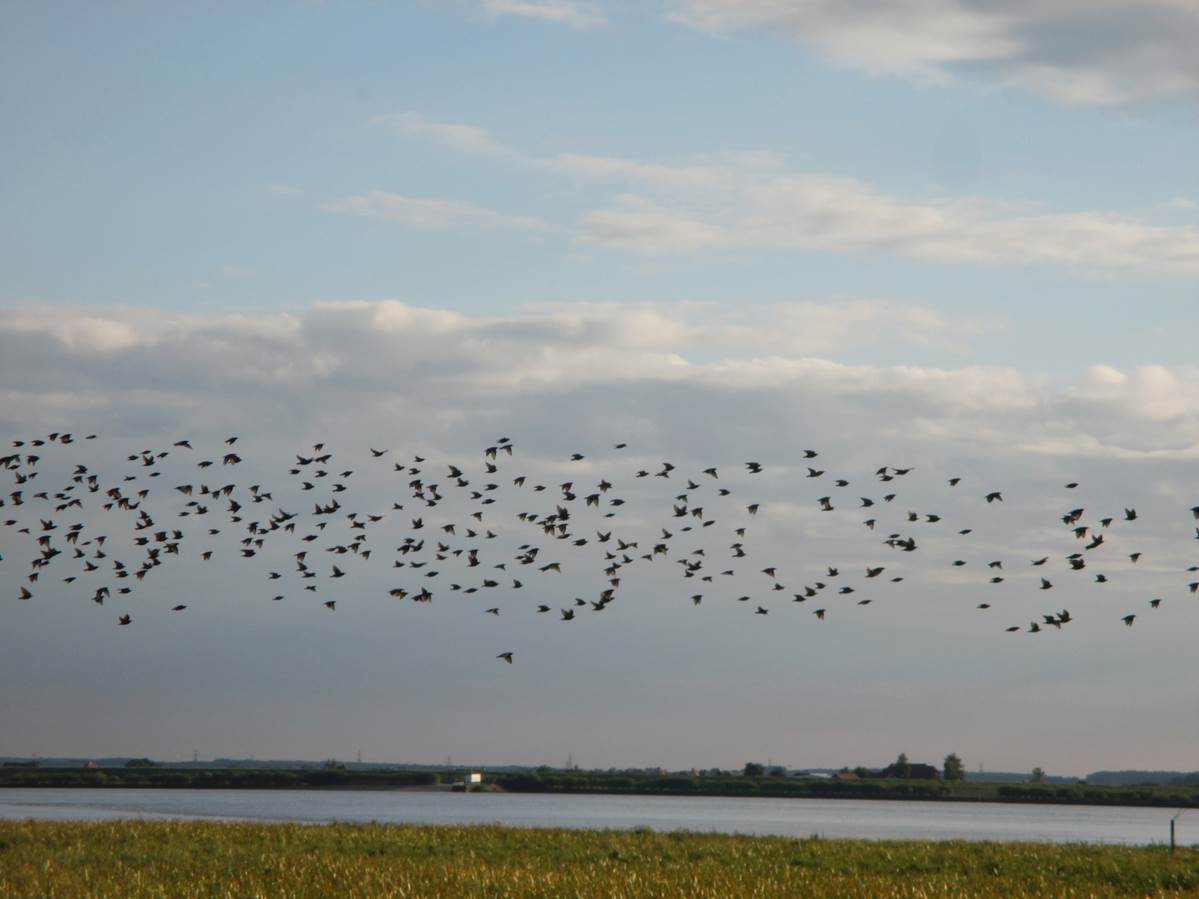 Na ja, gelegentlich sieht man einzelne Vögel. In Schwärmen sind sie als Insektenvertilger auf Grünland, z.B. auch an den Deichen der Elbe zu beobachten. Hier ein paar Eindrücke einer Radtour zwischen Hetlingen und Wedel.