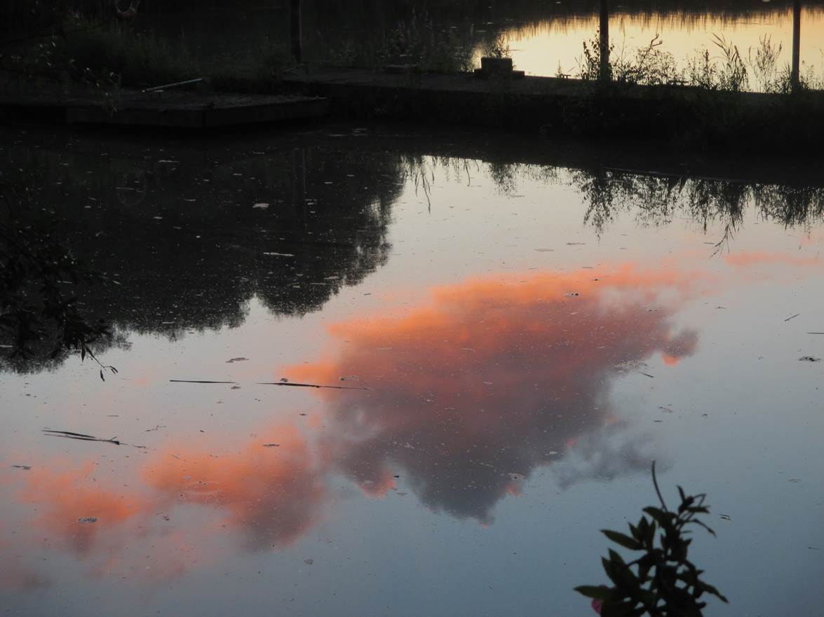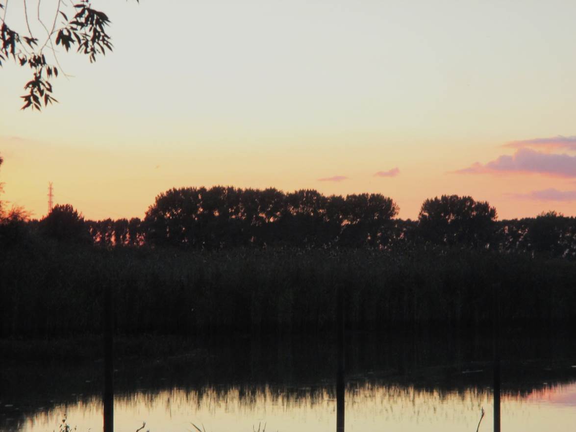 Da ist er! Der erste Starenschwarm! Flach, auf dem Foto kaum ahnbar an verschwommener Spiegelung, fliegt er in Windeseile an und rauscht ins Röhricht. Schon geht das Schwätzen los.