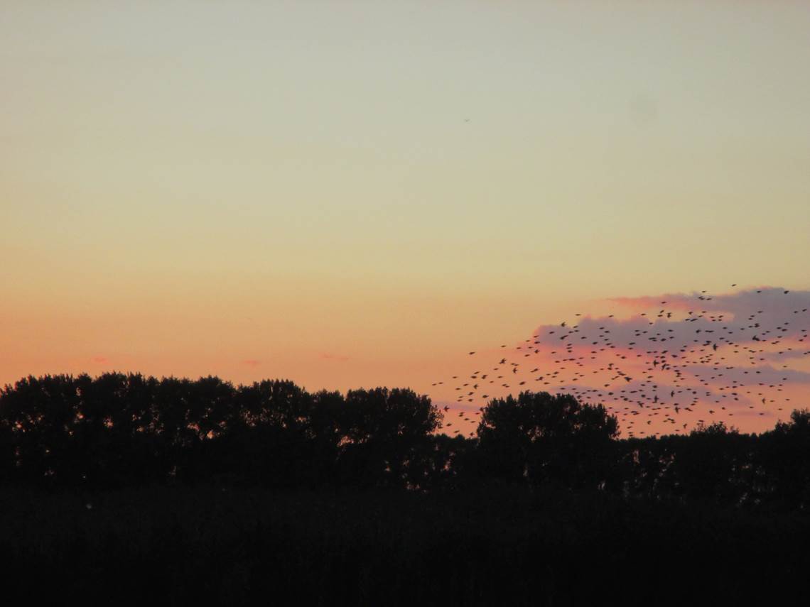 Mehr ging offenbar nicht an diesem Abend. Ich schätze die Starenzahl in diesem kleinen Areal auf mindestens 5.000 Individuen. Mal sehen, wie es weiter geht, ob so etwas wie „Sort Sol„, die „Schwarze Sonne“ ab Mitte September bis Ende Oktober vielleicht auch hier zu sehen sein wird.