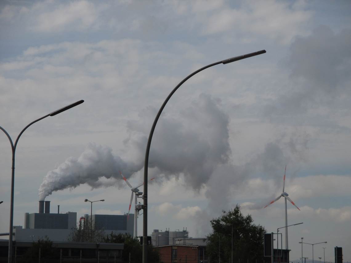 Teil-Aspekt des Kohlekraftwerks Moorburg – allerhand Wasserdampf aus der Verbrennung und der Elbwasserverdunstung über den Niedrigkühlturm. – Die längste Strecke B – HH / Wedel haben wir hinter uns.