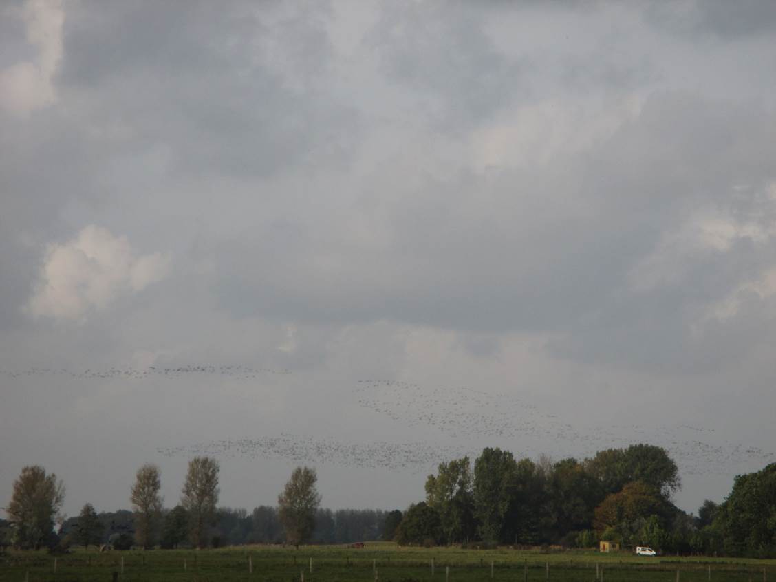 Der andere Teil geht in Tausendern runter auf eine Marschwiese, auf der bereits Tausende Nonnengänse rasten.