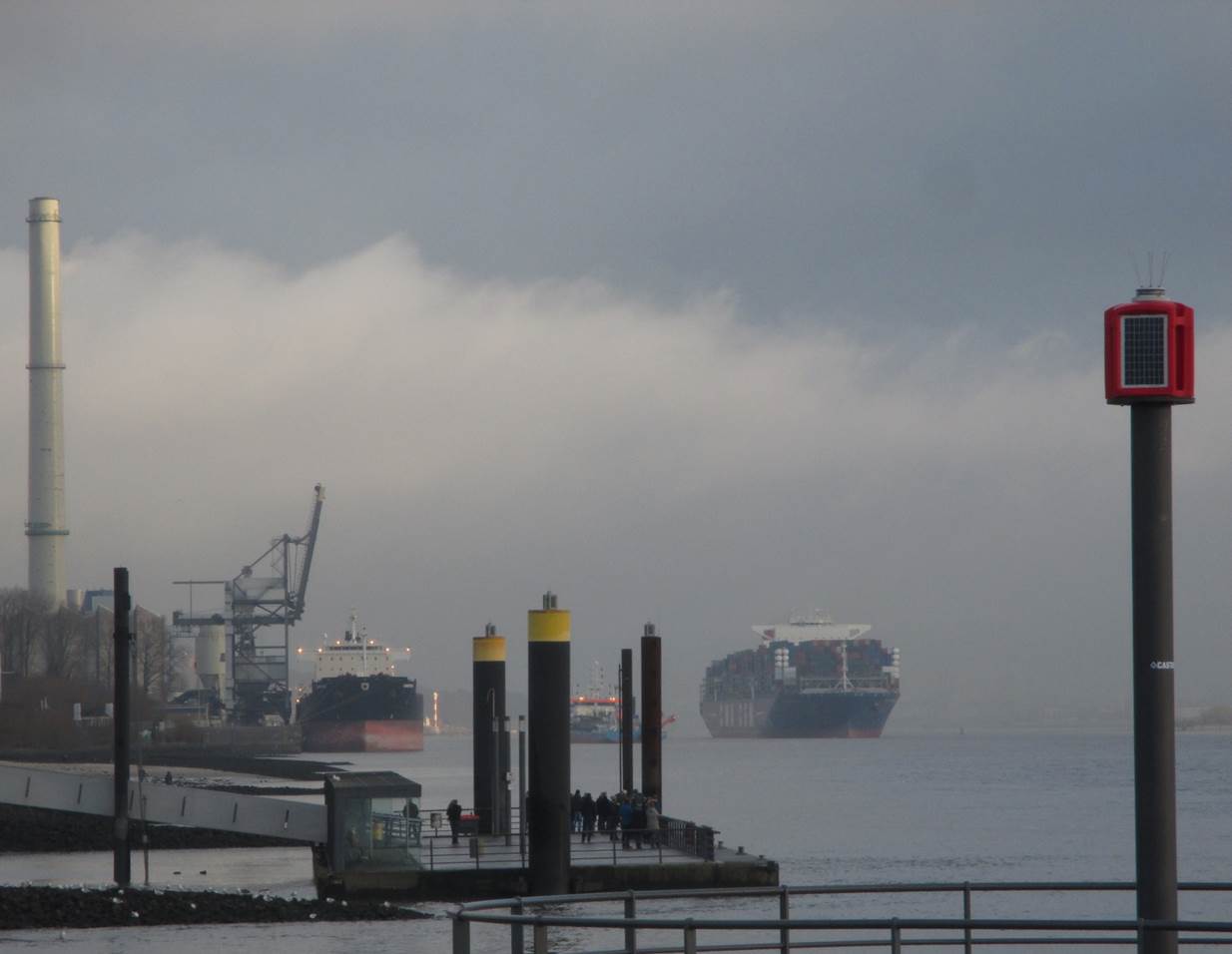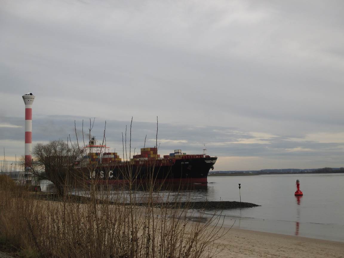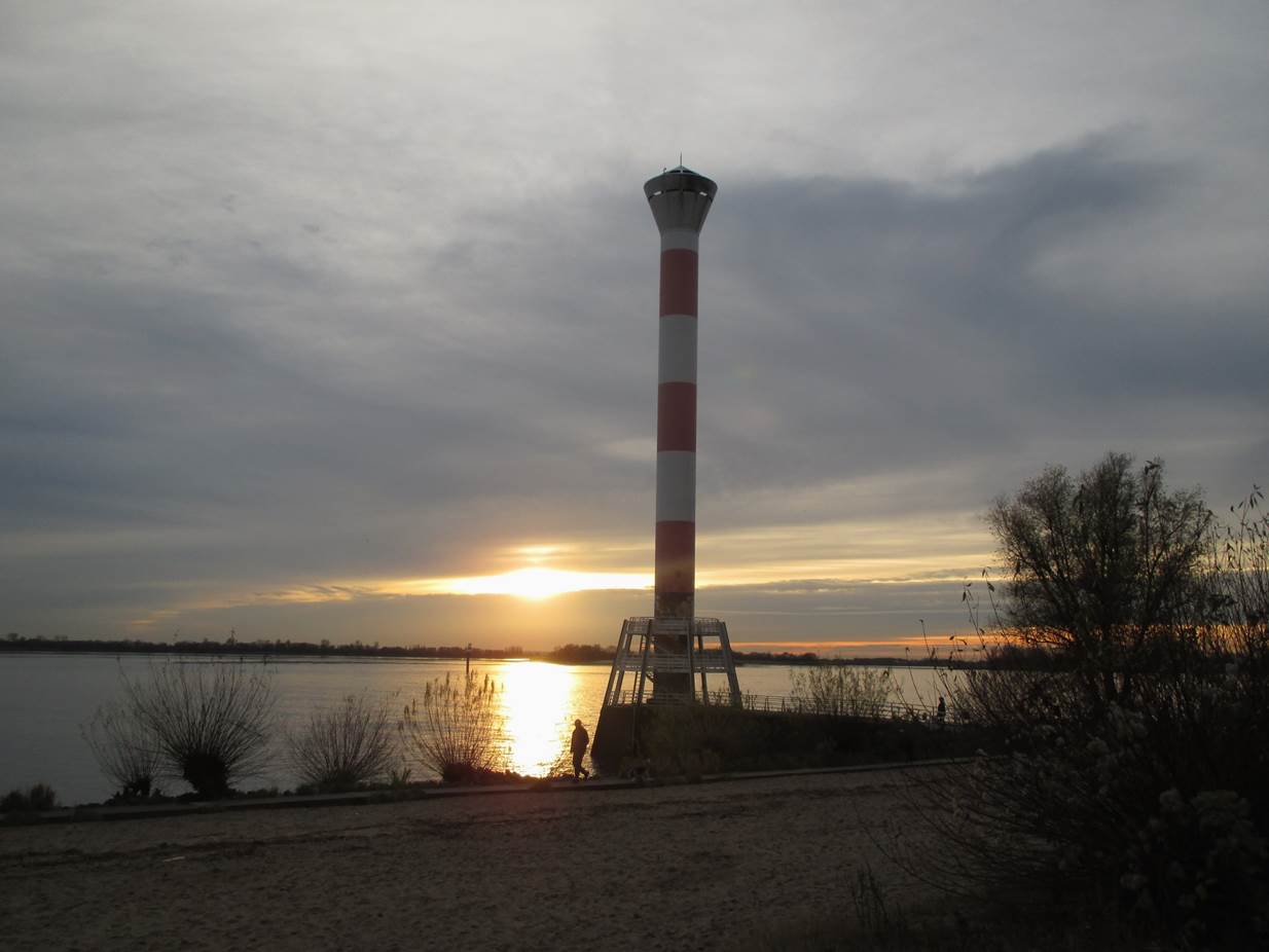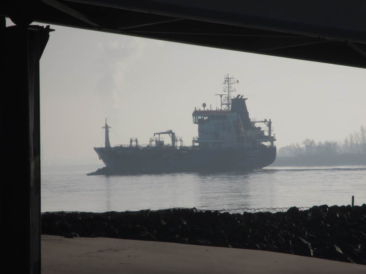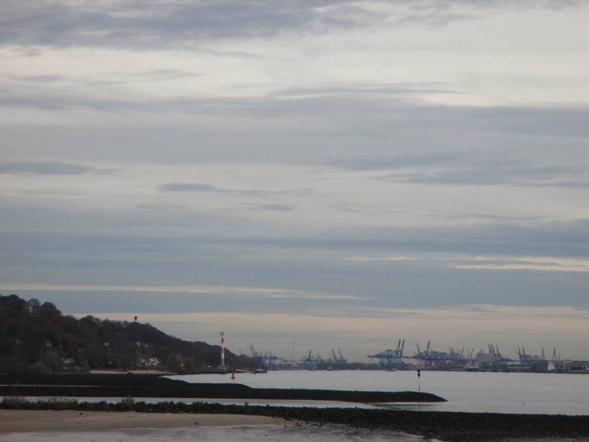 Sturm im Wasserglas? Nein, in einer Fahrspur neben der Deichverteidigungsstraße. – Bis hierher bin ich gegen den Sturm zeitweise im 1. Gang gefahren. Ab jetzt habe ich Rückenwind – der 7. bringt mich voran.