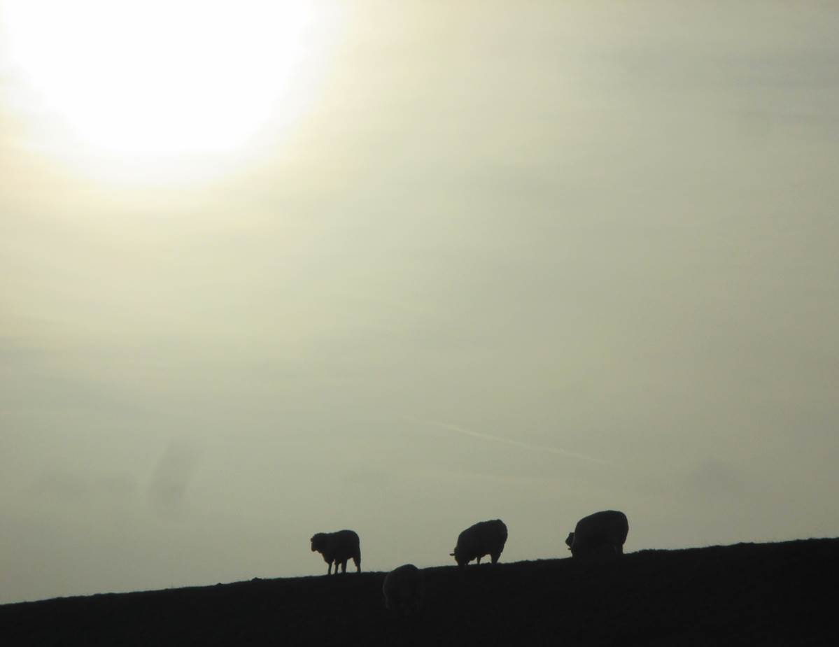 Irgendwie ist das Schaf da hin geraten. Trinkt es jetzt den Graben leer, um auf diese Seite zu kommen?