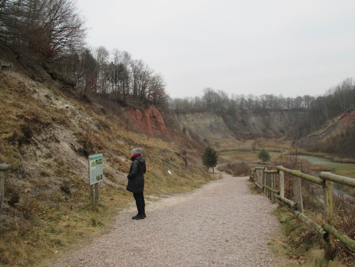 Dabei wurde – gegen den eisigen Wind (gefühlt bestimmt minus 10 Grad) – unsere Fehlüberlegung zum Wanderziel, unten in der Grube wären wir windgeschützt, noch deutlicher. Die Grube erstreckt sich Ost-West und der eisige Ostwind saust genau durch … Oben war`s halt noch klarer …