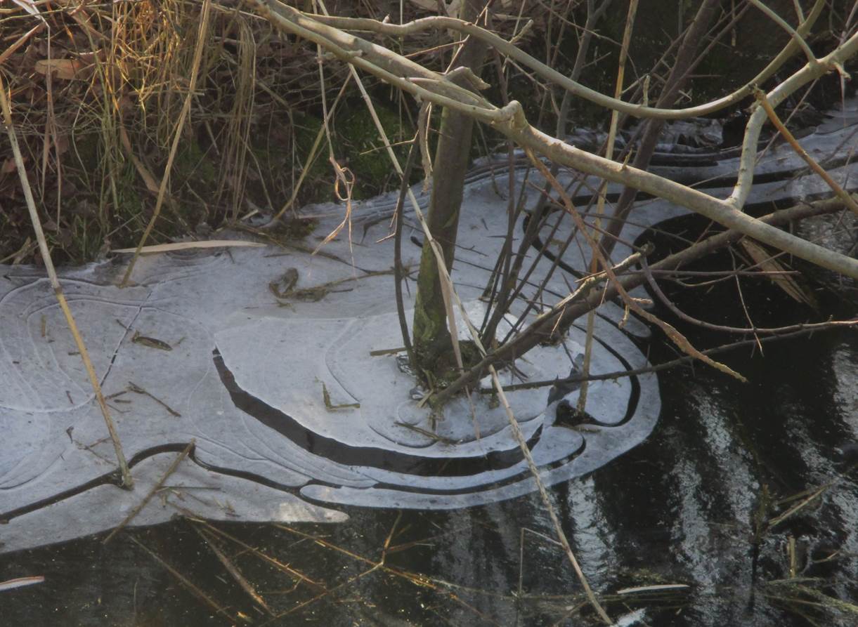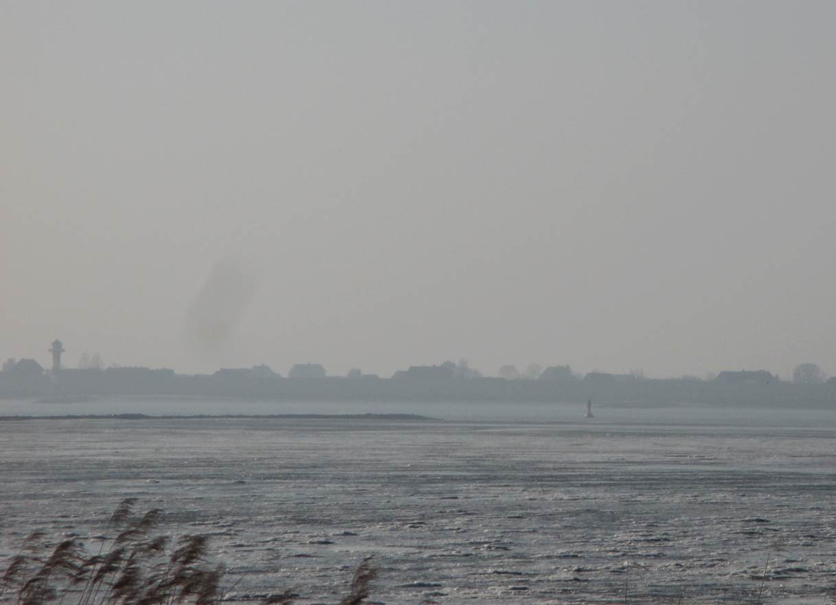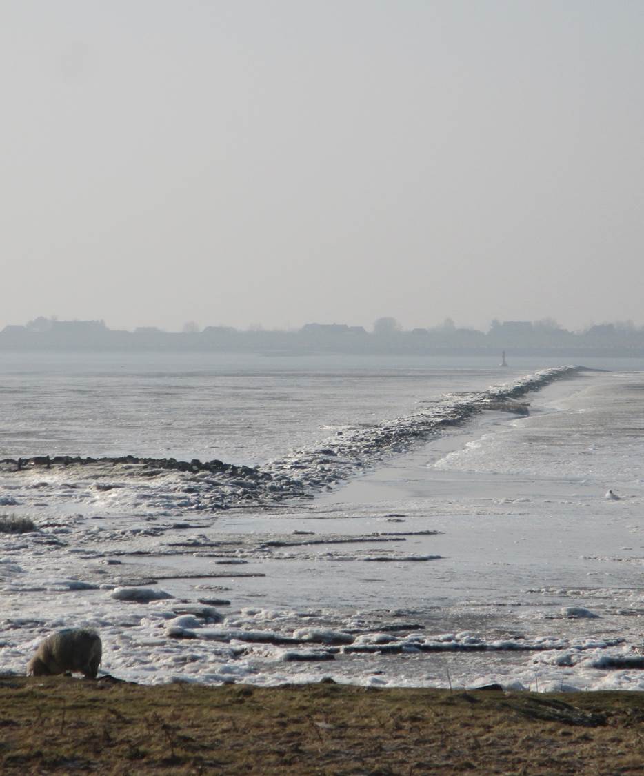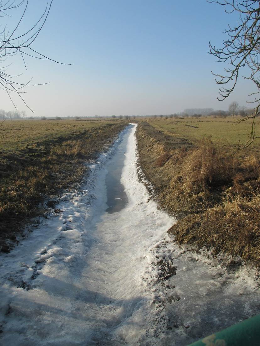 Hier pfeift eisiger Wind über freies Gelände. GlitzerEis blinkt aus den Marschgräben – eingebrochen, wir haben bald Tideniedrigwasser (Tnw).