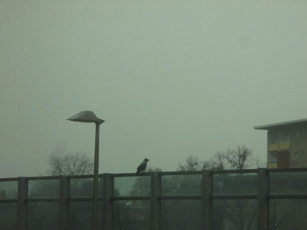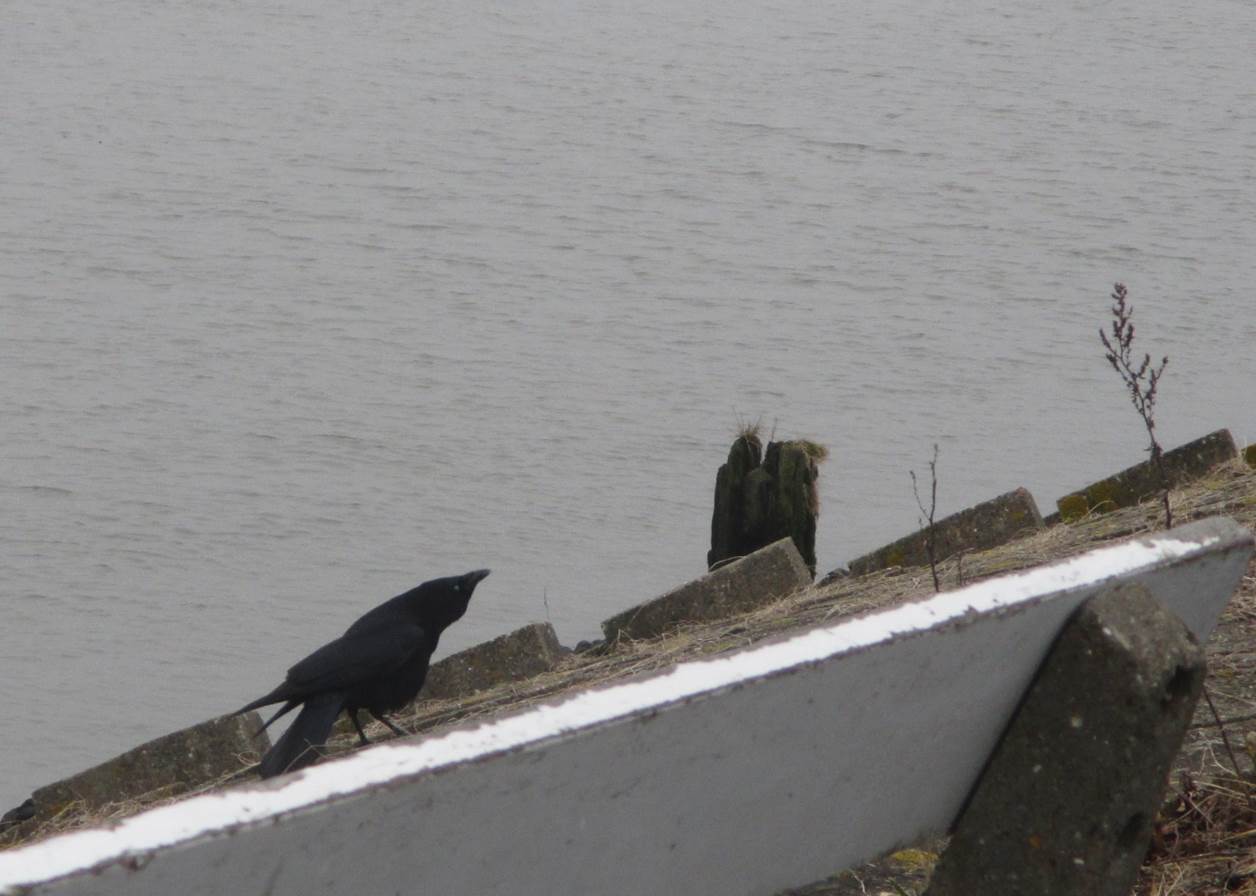 An der Elbe westlich Hamburg begrüßt mich der westliche Vetter der östlichen Nebelkrähe – eine Rabenkrähe (oder ist dies ein junger Kolkrabe?).