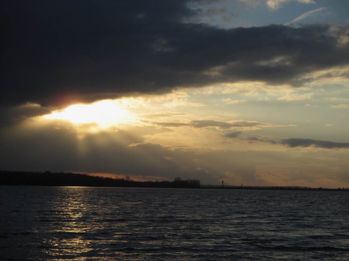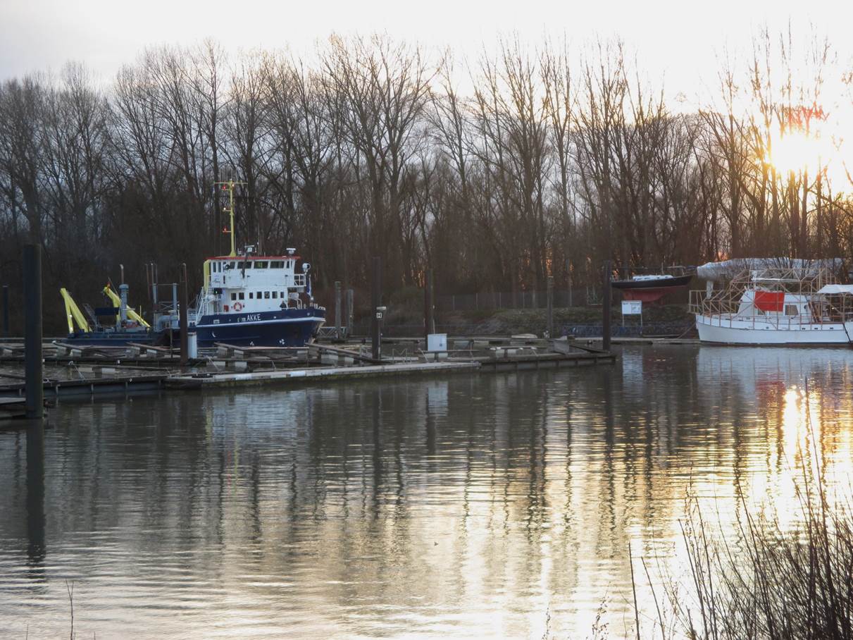 Goldene Wellen Richtung Sandstrand Wedel – ich verlasse den Schulauer Hafen.