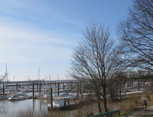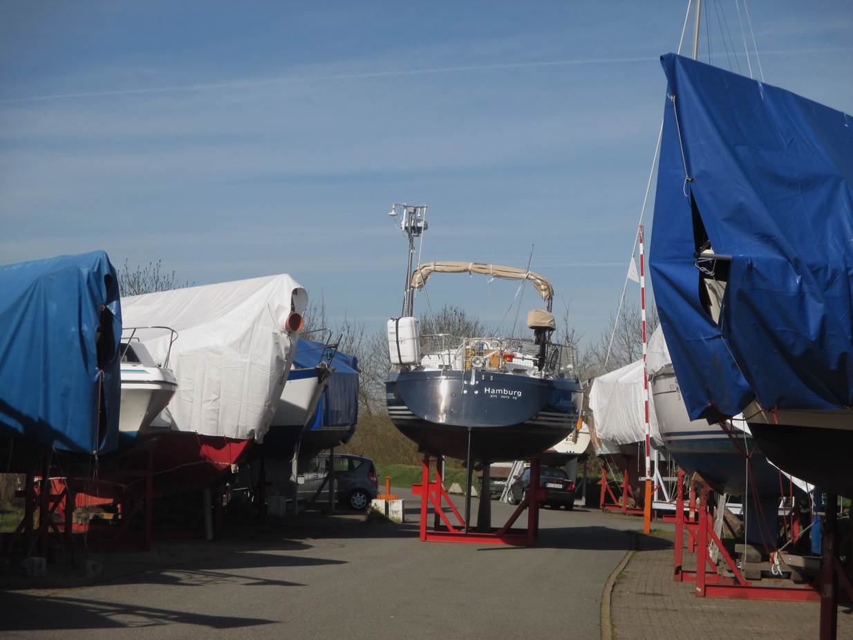 Ah, der Blick auf den Ostteil des Yachthafens zeigt, dass Motor- und Segelboote jetzt mit Einsatz aller Kräfte ins Wasser kommen.