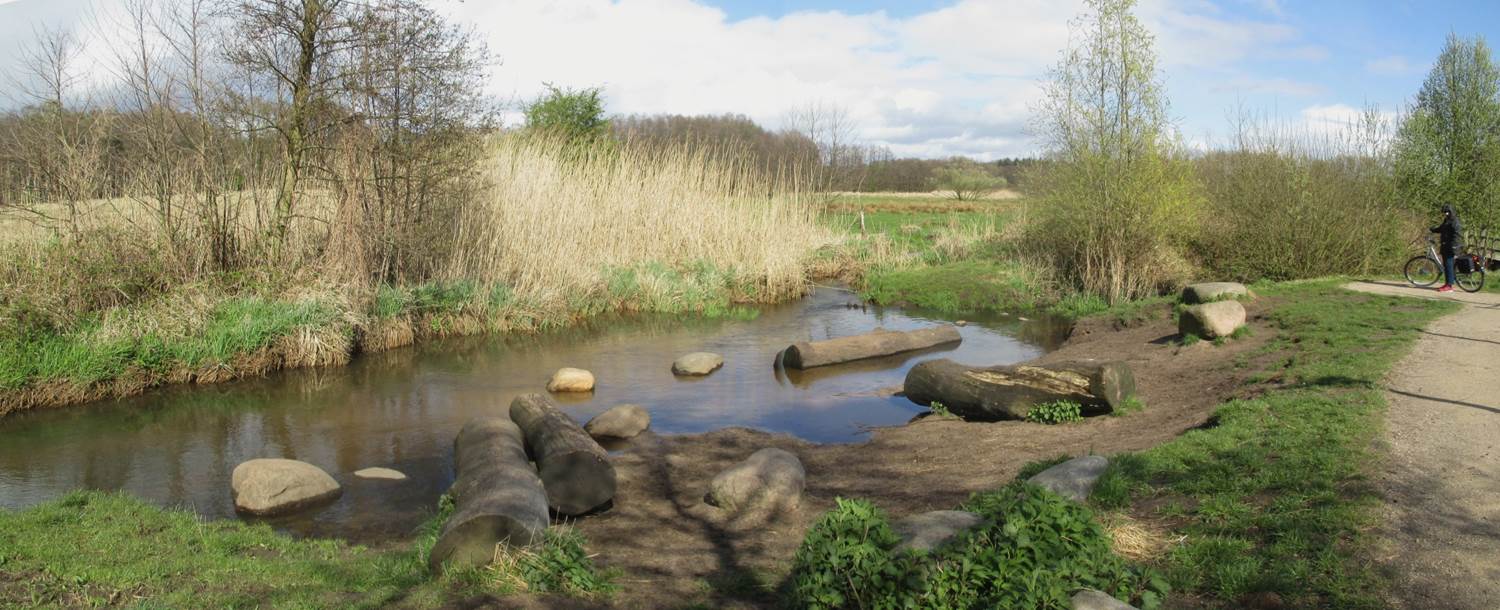 Leider mangelt es dem Wassererlebnis an Kieseln, die Kinder – plupp, plupp – in die Wedeler Au werfen könnten. Mal sehen, ob eine angeboten Ladung Kies akzeptabel ist. Zur Zeit scheint es: auf keinen Fall. Eine große Menge „Fallschutzsand“ solle aufgefüllt werden. Davon, dass Fallschutzsand / -kies dem Gewässer, der Verbesserung seiner Dynamik oder dem Wassererlebnis diente, habe ich jedenfalls bisher noch nie etwas gehört. Man lernt nie aus.