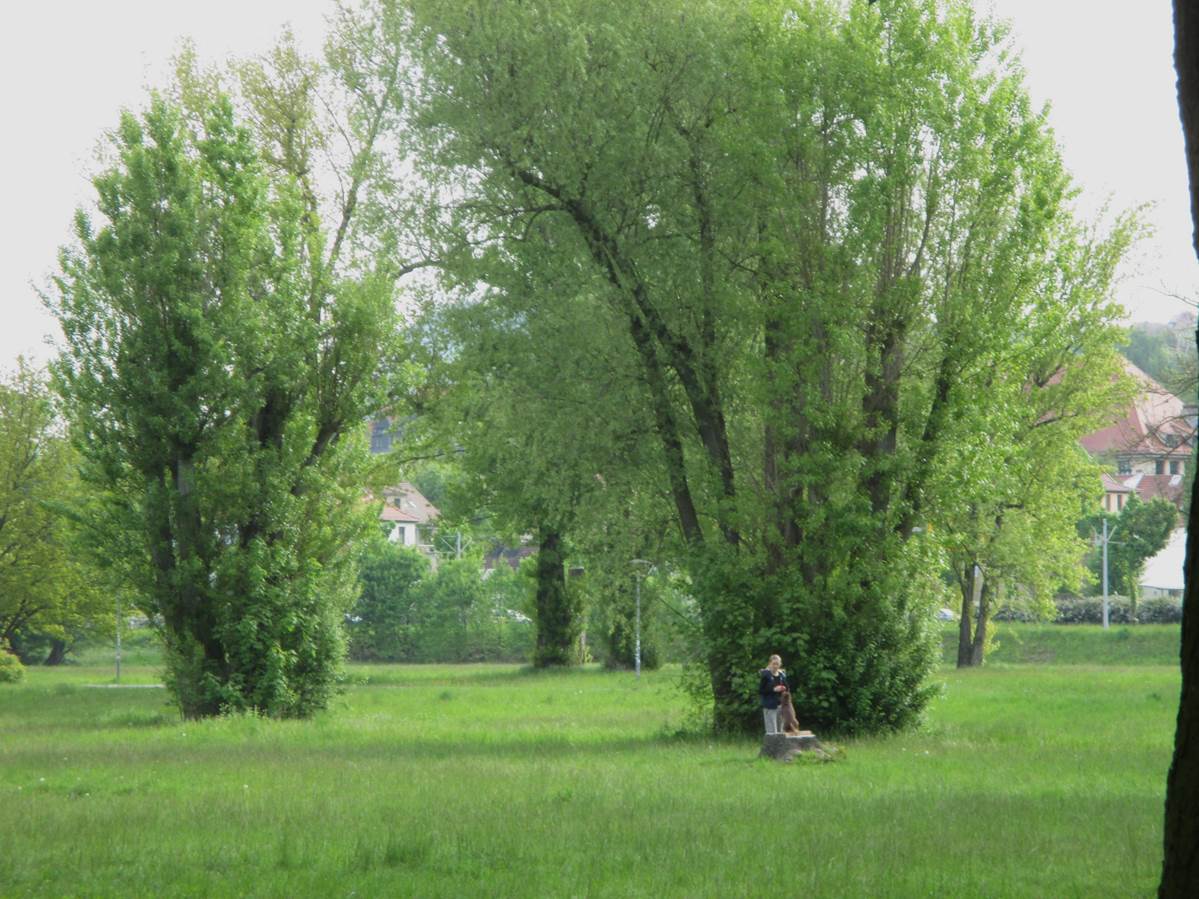 Gut zu wandern und zu radeln – Auwaldreste an den Sport-Stadien, teilweise fast wie ein Kunst-Parcours.