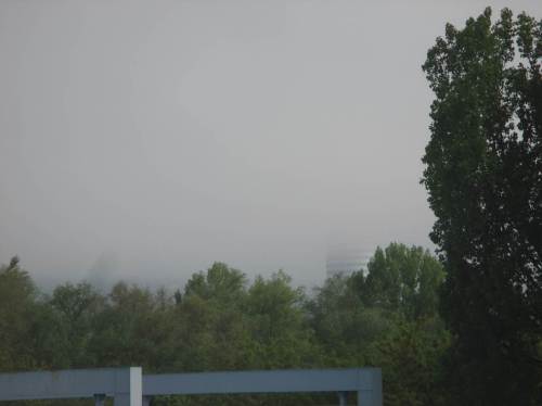 Uuuups, dicker Nebel beim Aufstehen – man gerade, dass die über den Hummelsberg lugende Sonne sichtbar wird.