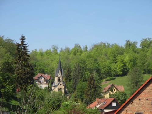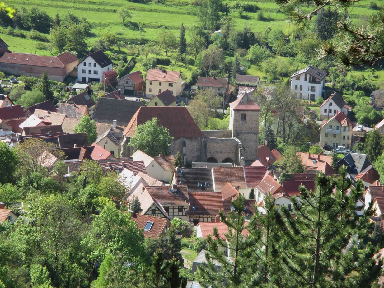 Blick vom Burg-Plateau auf die – schon gezeigte – Kirche Tautenburg.
