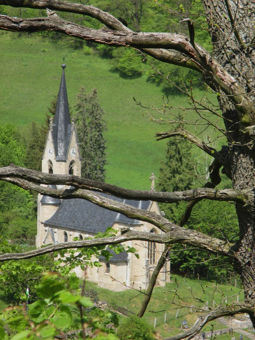 Kirche Tautenburg, fotografiert im Anstieg zur gleichnamigen Burgruine.