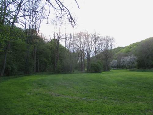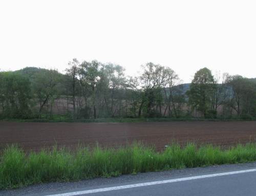 Weiter bachab, Richtung seiner Mündung in die Saale wechselt die Intensivnutzung der Aue in Ackerland. Da es an beiden Uferstrecken jetzt – im Mai – noch offen liegt, offenbar für Mais – BIS AN DEN BACH – vorgesehen.