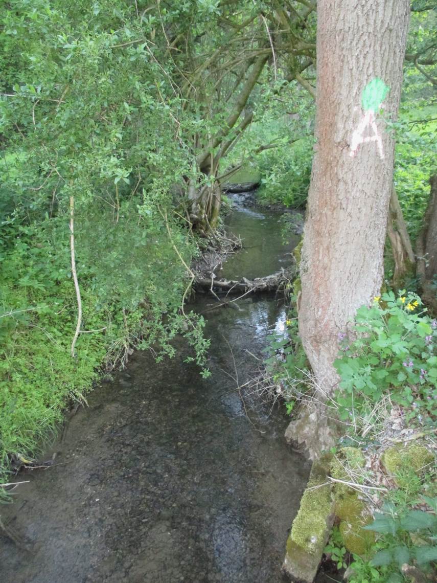 Immerhin säumt diesen, landschaftlich schön fliessenden Bach eine Baum-Allee – allerdings randstreifenlos begleitet von Intensiv-Grünland in seiner schmalen Aue.