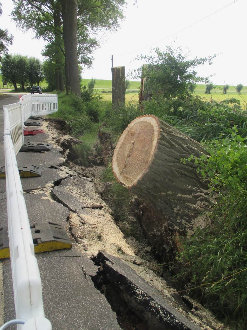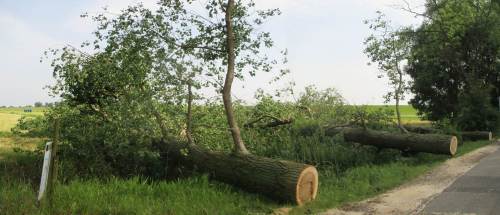 Auf sonniger Radtour – professionelle Säger haben die Straße frei gemacht. Die alte Pappelreihe hat eine Lücke, 3 Bäume sind im Gewittersturm gestürzt.